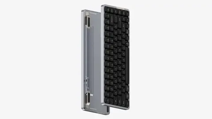 Чёрная как базальт, тонкая как воздух. Беспроводная, низкопрофильная, с полным контролем через QMK/VIA. Cтавится прямо на ноутбук.