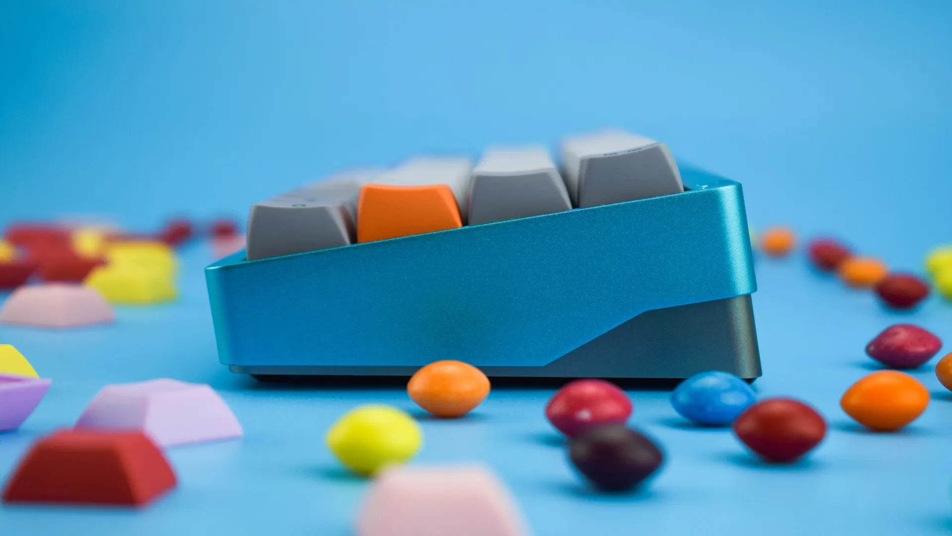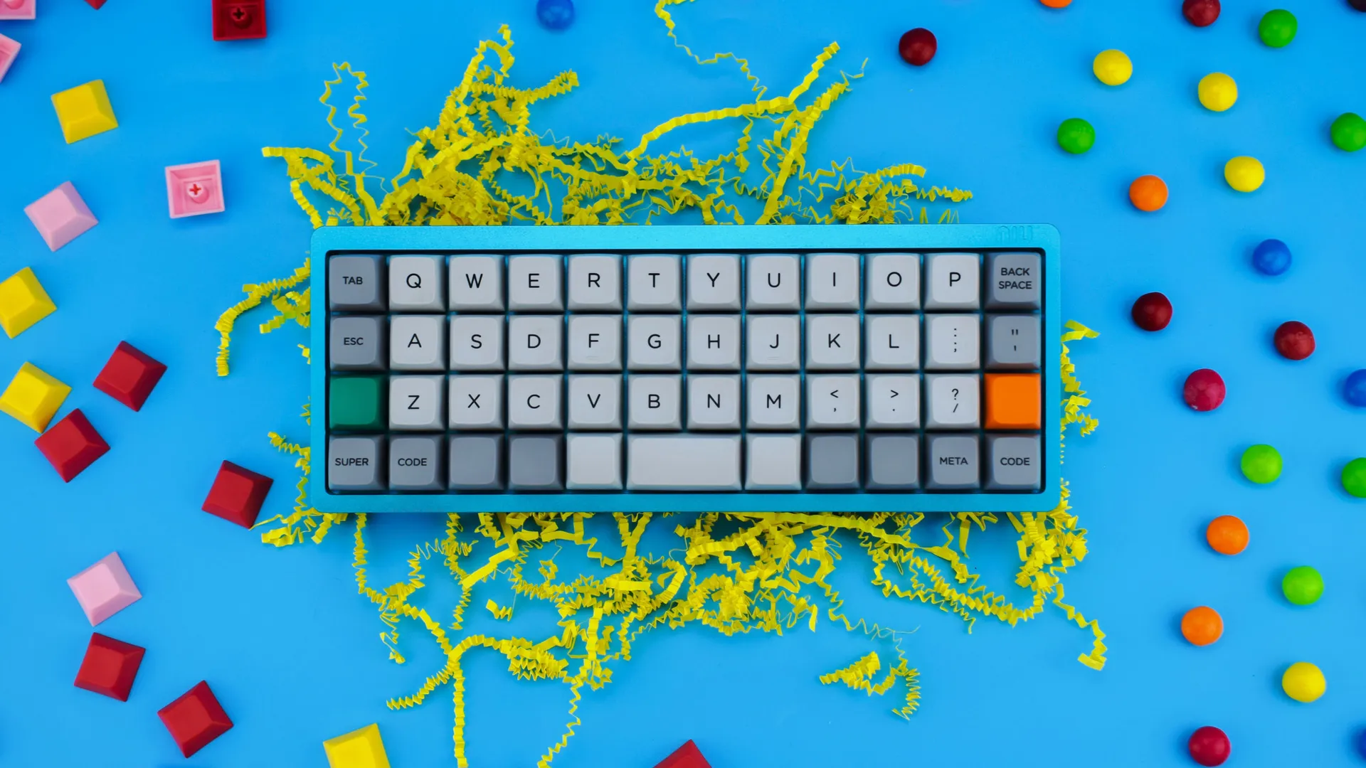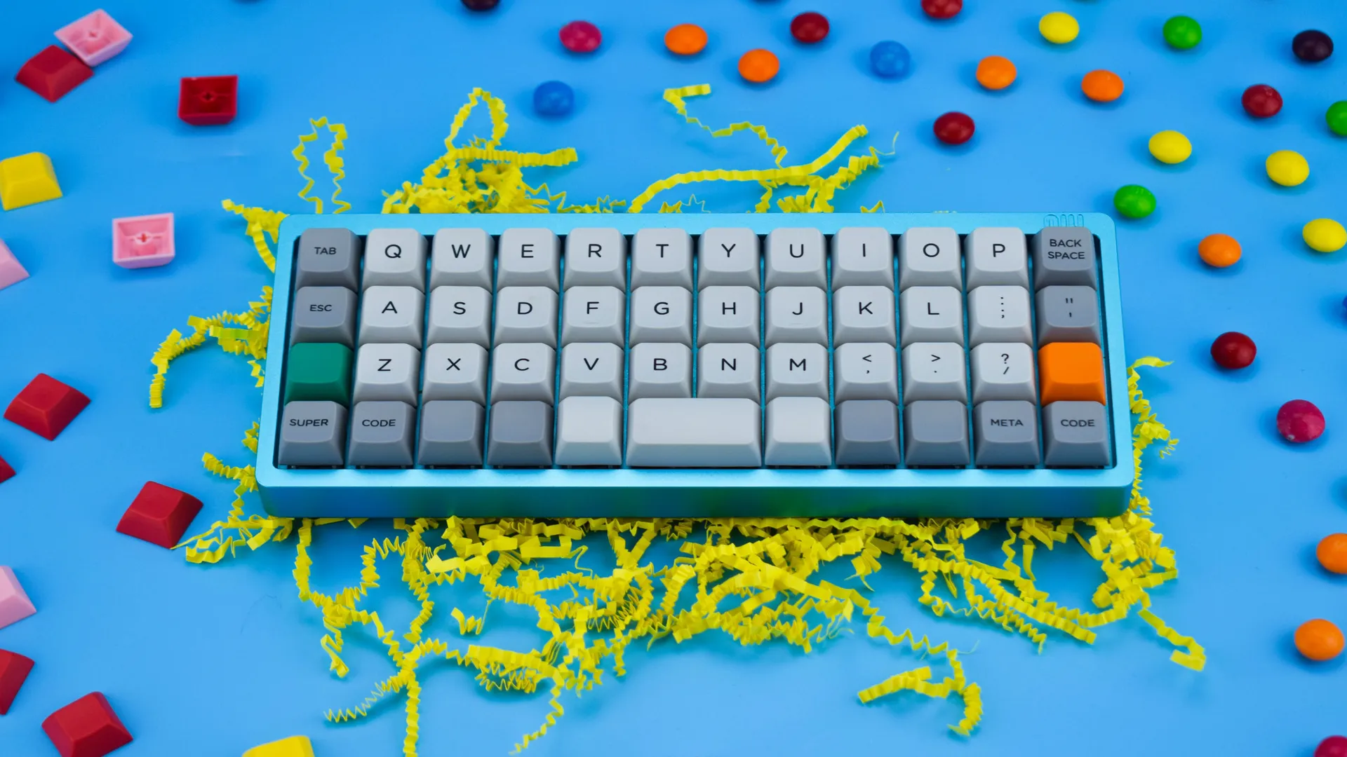 Механическая клавиатура NIU Mini 40% на переключателях Zeal PC Tealios v2. Корпус сделан из алюминия. Полностью программируемая, поддреживает QMK и прошита под VIA.