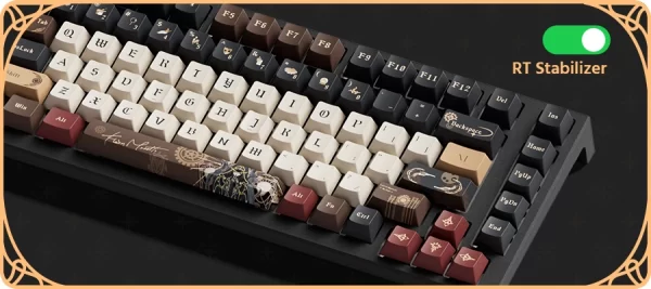 Данная клавиатура результат коллаборации Akko с популярной серией “Lord of the Mysteries”. TAC75 HE объединяет мистическую визуальную концепцию с передовыми магнитными переключателями нового поколения. Компактный 75% формат сохраняет функциональность, включая стрелки и блок навигации, идеально подходя как для игр, так и для работы.