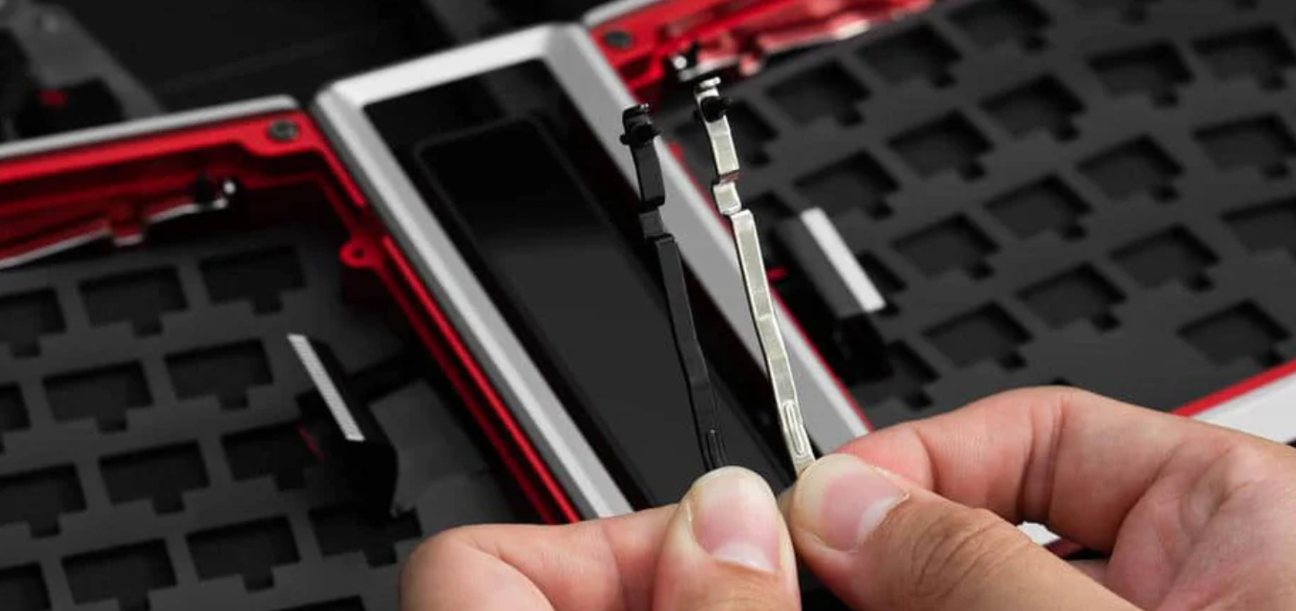 Специальная пружина позволяет настраивать жесткость нажатия клавиш от очень жесткого до очень мягкого, изменяя изгиб печатной платы. Это дает существенное преимущество перед традиционными методами регулировки жесткости (уплотнительные элементы и гибкие печатные платы), которые часто оказываются неэффективными.