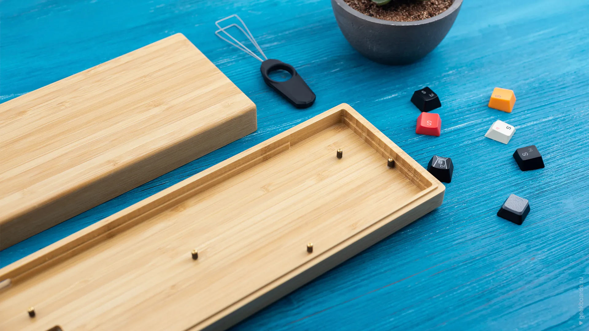 Офигенный корпус из настоящего бамбука. Мы специально организовали рабочую поездку в Китай, чтобы нагло спереть купить его у обитающих там милых и дружелюбных панд ^_^