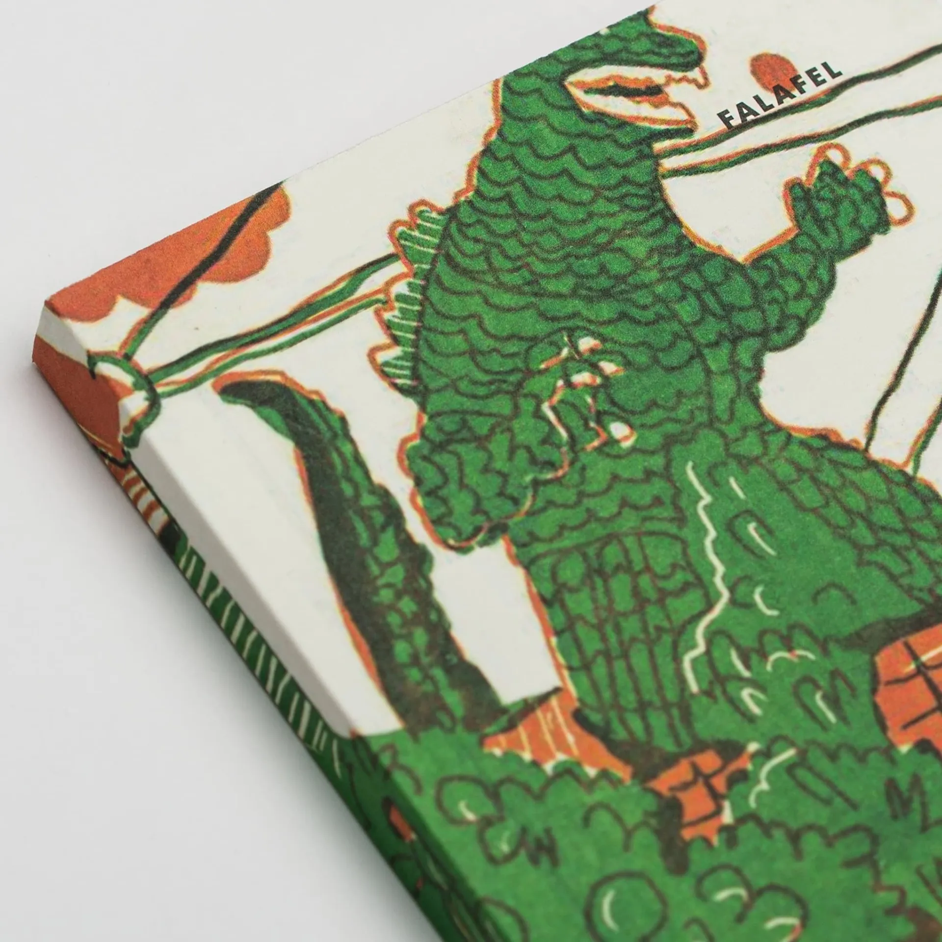 Годзилла на иллюстрации Дарьи Калицкой никому не угрожает – кажется, что просто собирается пропалывать огород или достраивать забор. Миролюбивый монстр обитает на обложке компактного блокнота А6 – и делит пространство с 40 листами кремовой нелинованной бумаги.