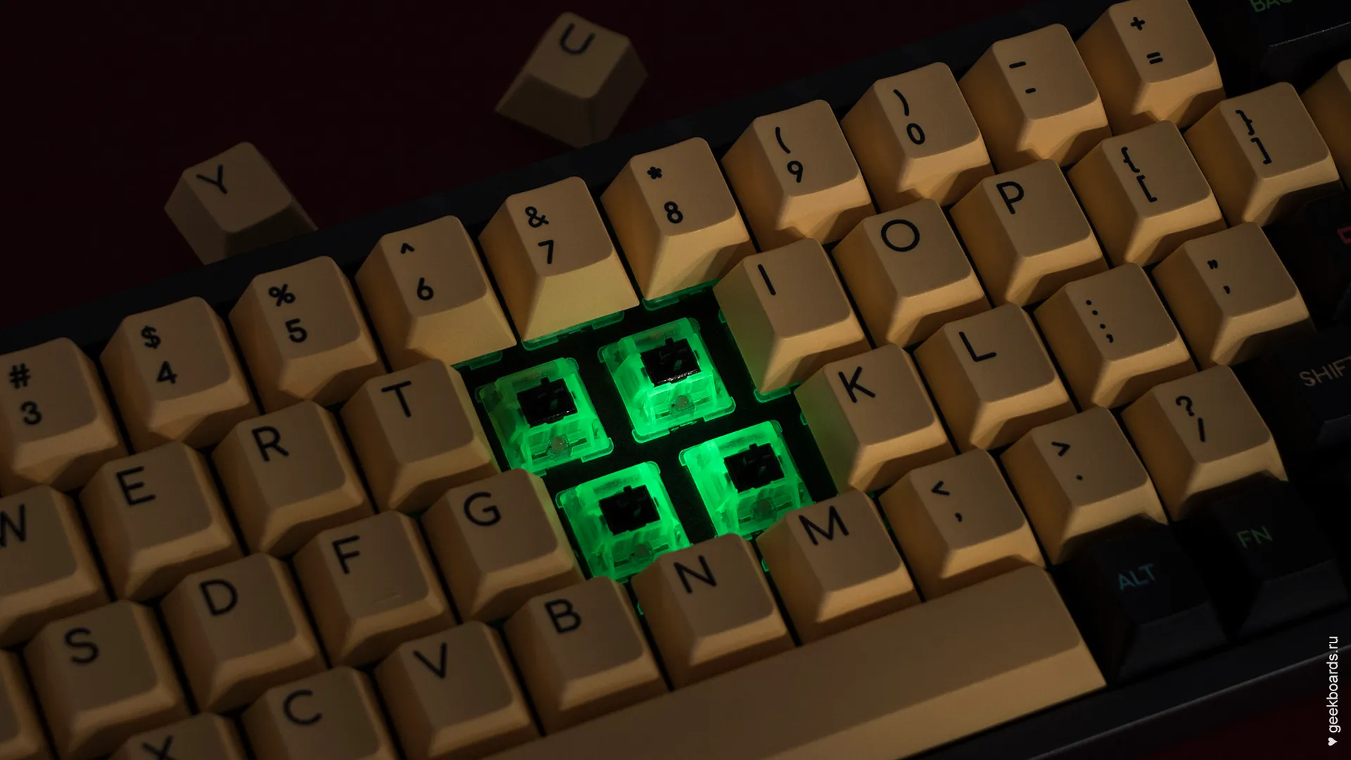 - Дополнительные кейкапы из набора «Cherry Profile Cheese», установленного на клавиатуре;