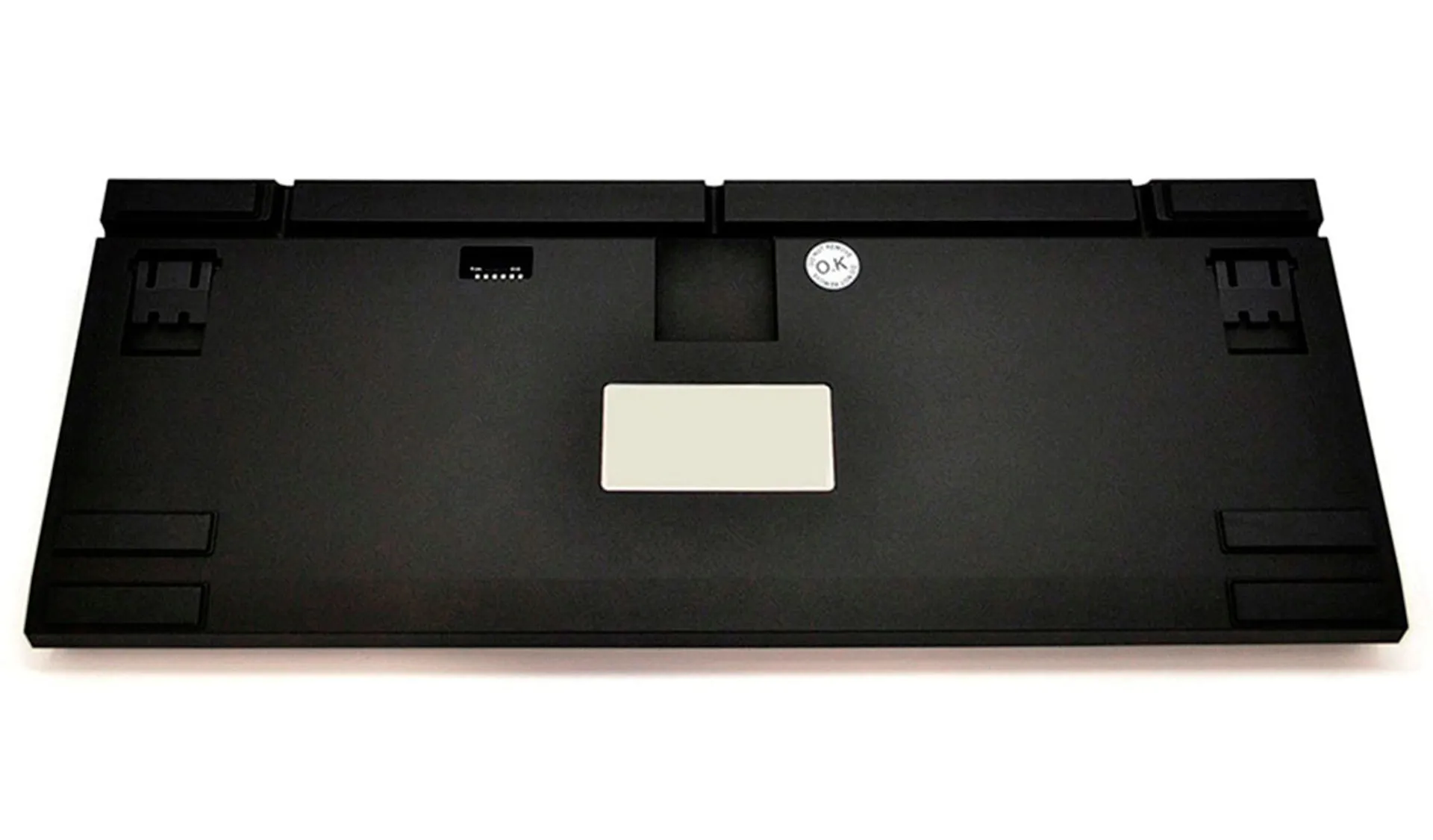 В комплекте с клавиатурой идёт кабель micro-USB длиной 1,8 м. Чтобы клавиатуру можно было удобно расположить на любом рабочем месте, предусмотрено 5 вариантов вывода кабеля: 1 по центру, 2 слева и 2 справа. При этом кромки каналов для вывода кабеля специально скруглены, чтобы защитить кабель от изломов.