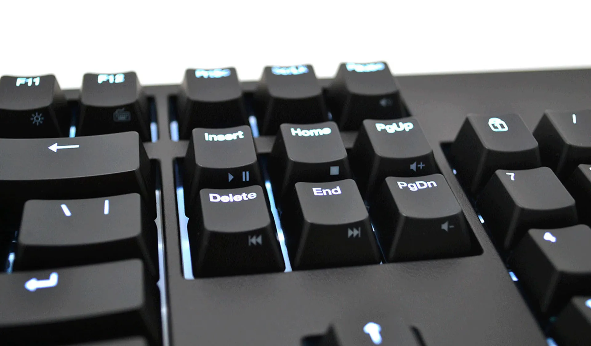 Белая подсветка с 7 уровнями яркости от едва заметной до максимально яркой, которую видно даже днём. Причём клавиатура будет помнить выбранный уровень яркости даже после отключения от компьютера. Более того, стальная пластина под клавишами выкрашена в белый цвет, чтобы равномерно рассеивать свет от диодов.