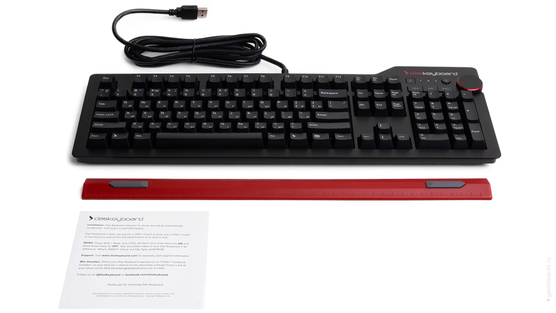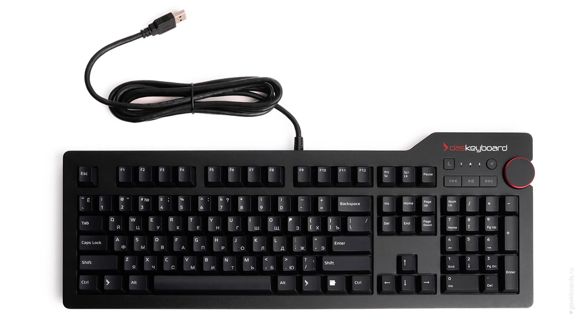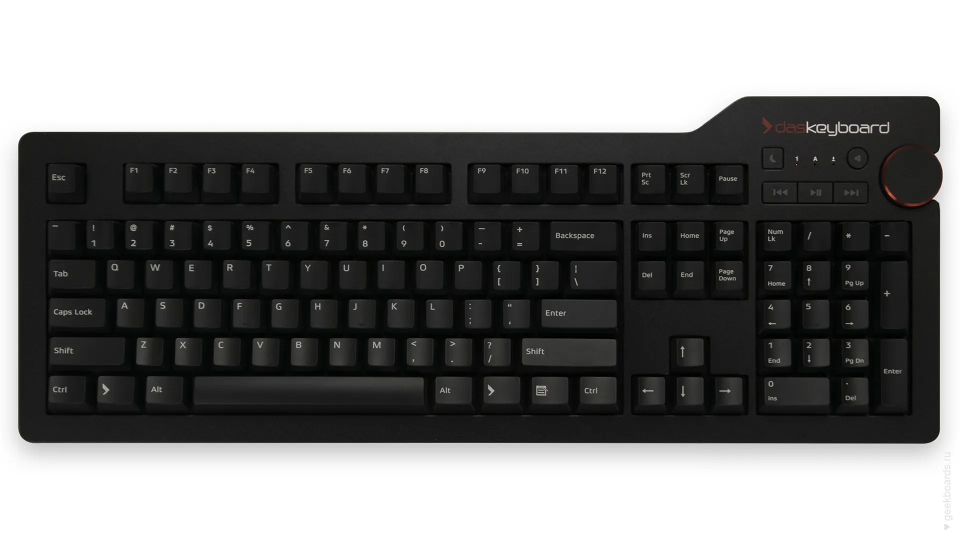 Клавиатура Das Keyboard четвёртого поколения от компании Metadot. Одна из немногих механических клавиатур на рынке с функцией N-Key Rollover по USB. Создана специально для высокоскоростного набора текста. Фантастическую тактильную обратную связь обеспечивают переключатели Cherry MX Brown, деликатность срабатывания которых не мешает окружающим. Среди механических клавиатур Das Keyboard 4 обладают наименьшей толщиной. Колесо регулировки громкости и два высокоскоростных порта USB 3.0 делают работу ещё более комфортной