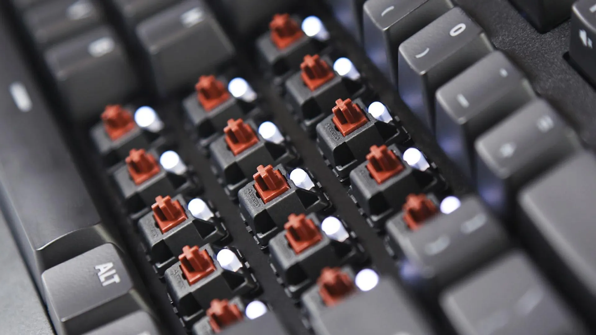 Универсальные переключатели Cherry MX Brown для профессиональных клавиатур. Подойдут тем, кто не может определиться с выбором «по ощущениям» или для тех, кто и играет, и работает с текстом на одной клавиатуре. А также если компьютер является семейным или многопользовательским..