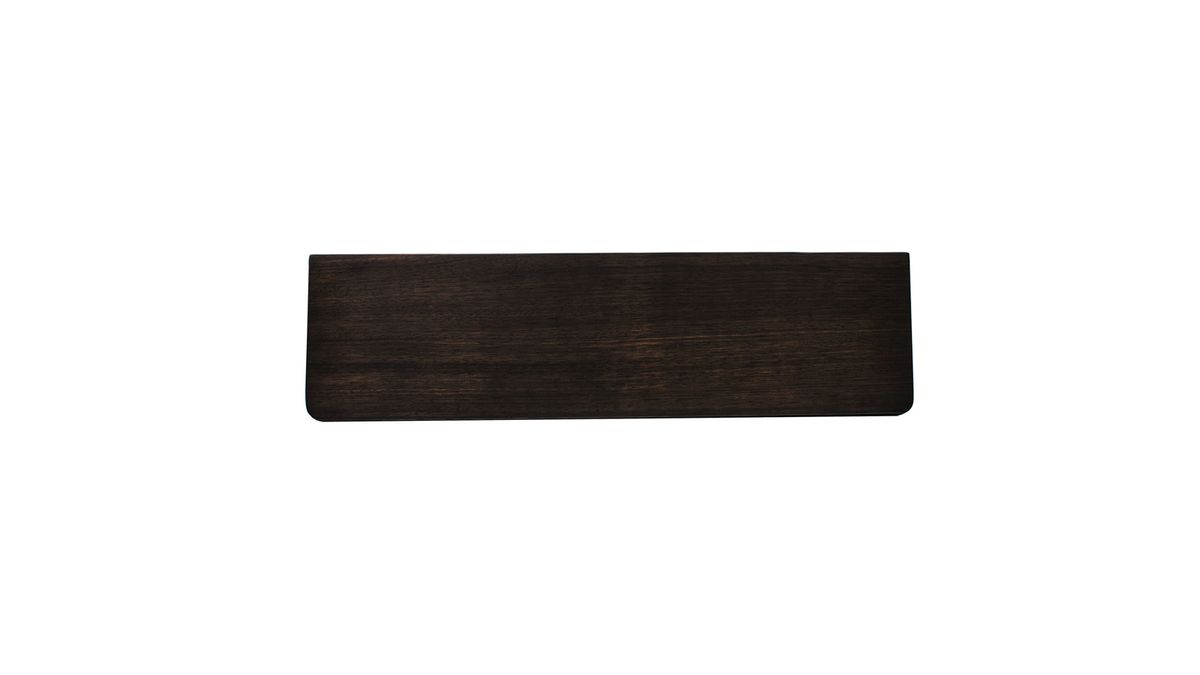 Деревянная подставка под запястье. Гладкая и приятная на ощупь. С обратной стороны есть прорезиненные ножки, чтобы сильно не скользила по столу.