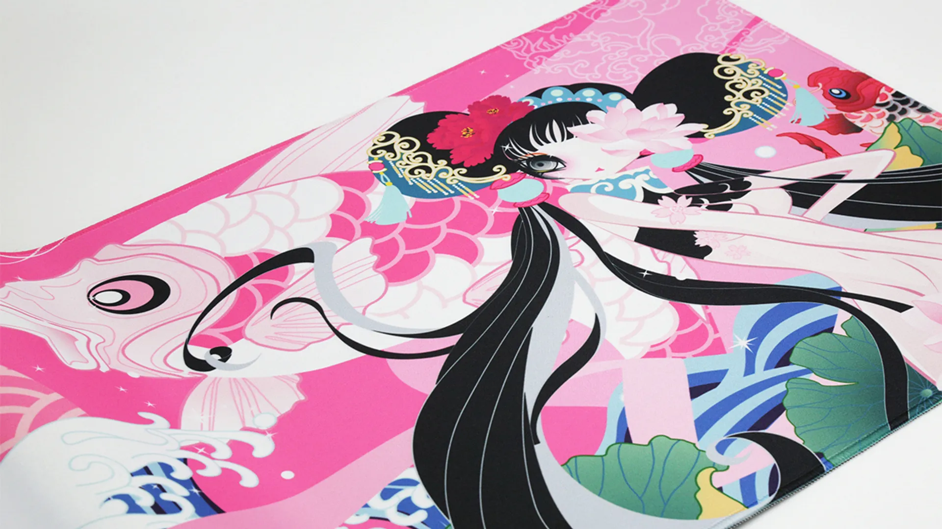 Коврик на рабочий стол Varmilo Koi — Overshadow the Flowers с прошитыми краями. Размер – 90х40x0.3 см.