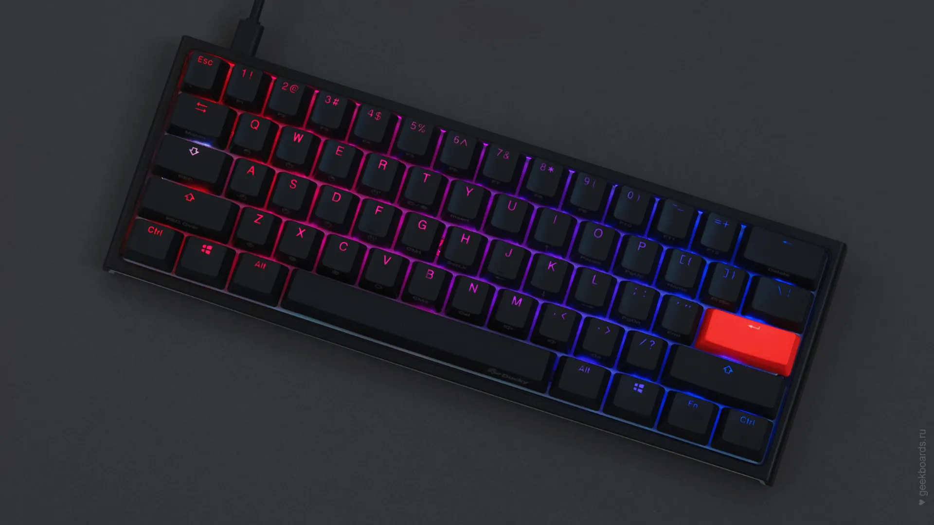 Механическая клавиатура Ducky One 2 RGB Mini. PBT double-shot клавиши, ножки с 3 уровнями настройки, легкая и портативная, RGB подсветка с обширными настройками и поддержкой Chroma Broadcast, Ducky Macro 2.0.