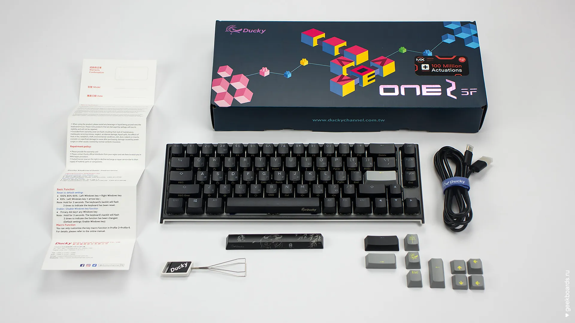 Ура! Теперь Ducky производятся с полноценными русскими символами, пропускающими подсветку. Больше никакой гравировки, только PBT double-shot, только хардкор.