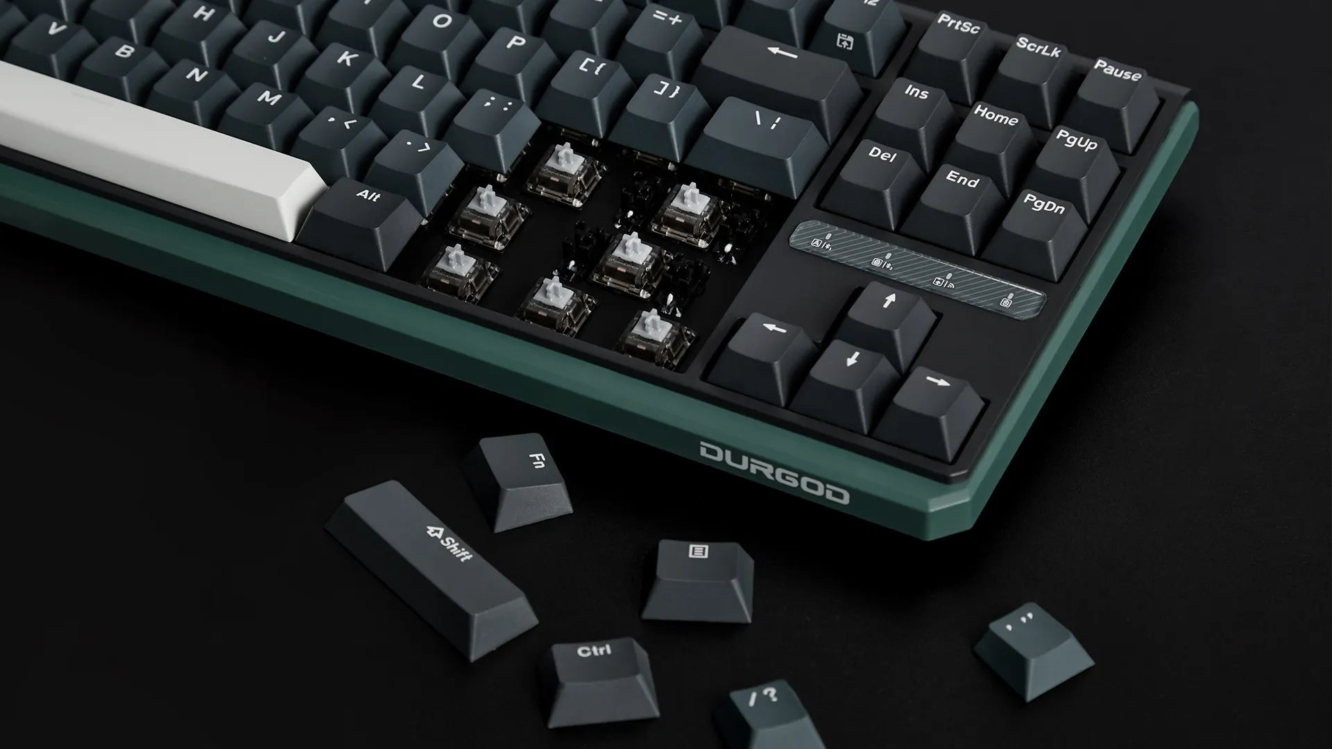 Специальные сокеты позволяют менять переключатели без паяльника. Для этой клавиатуры подходят стандартные Cherry-подобные переключатели.