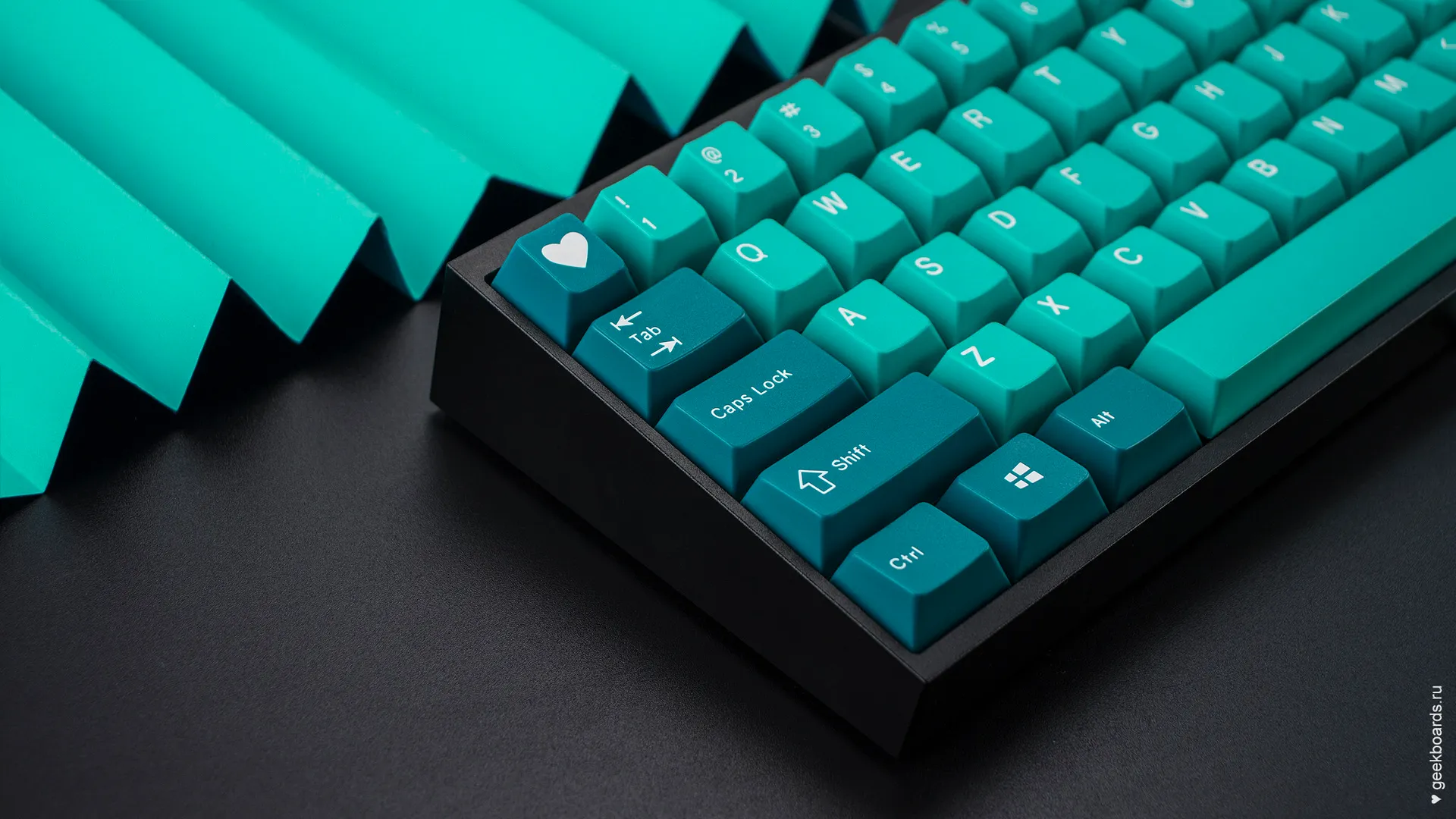 - Дополнительные кейкапы из набора «EnjoyPBT Blue», установленного на клавиатуре;