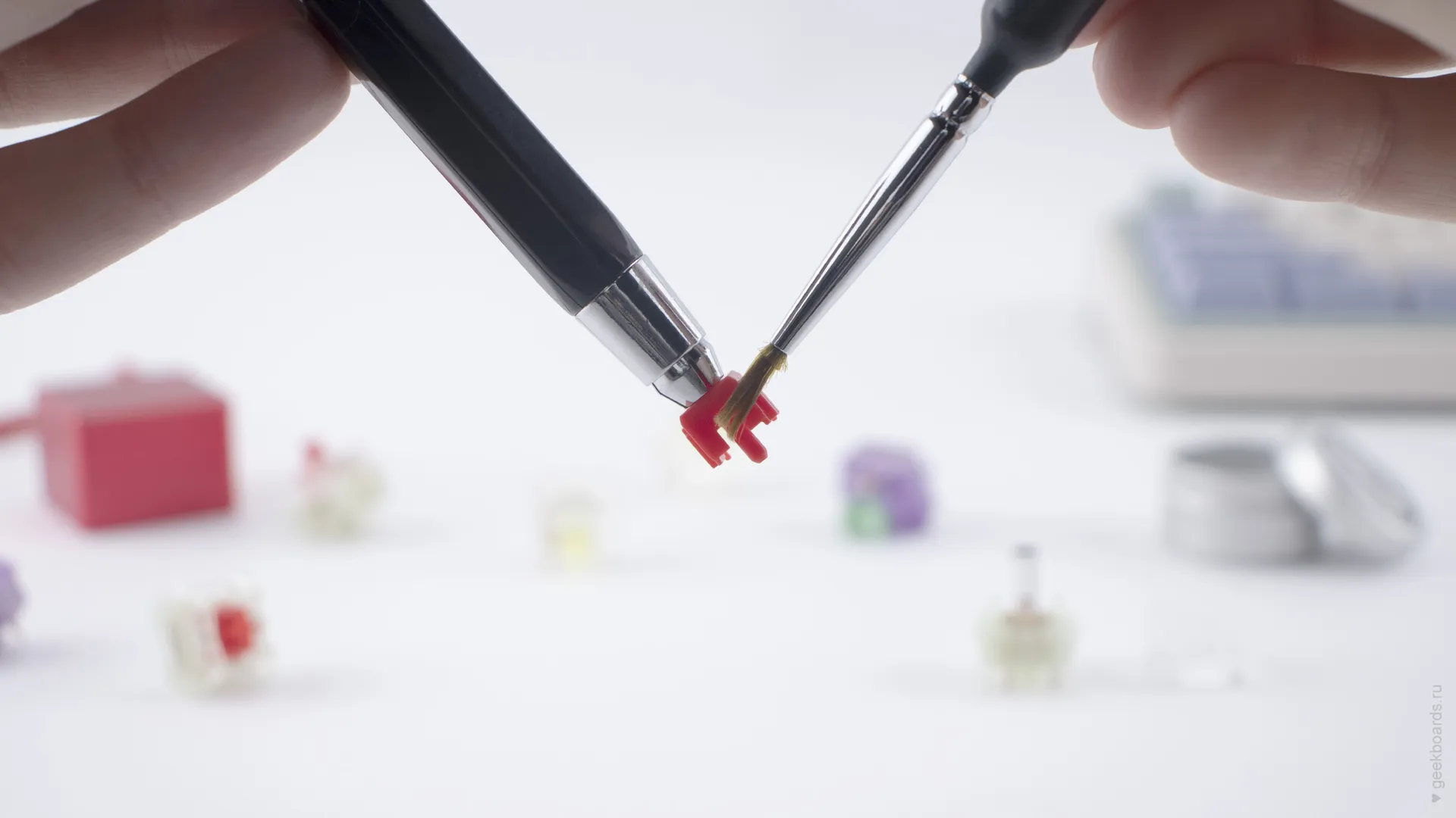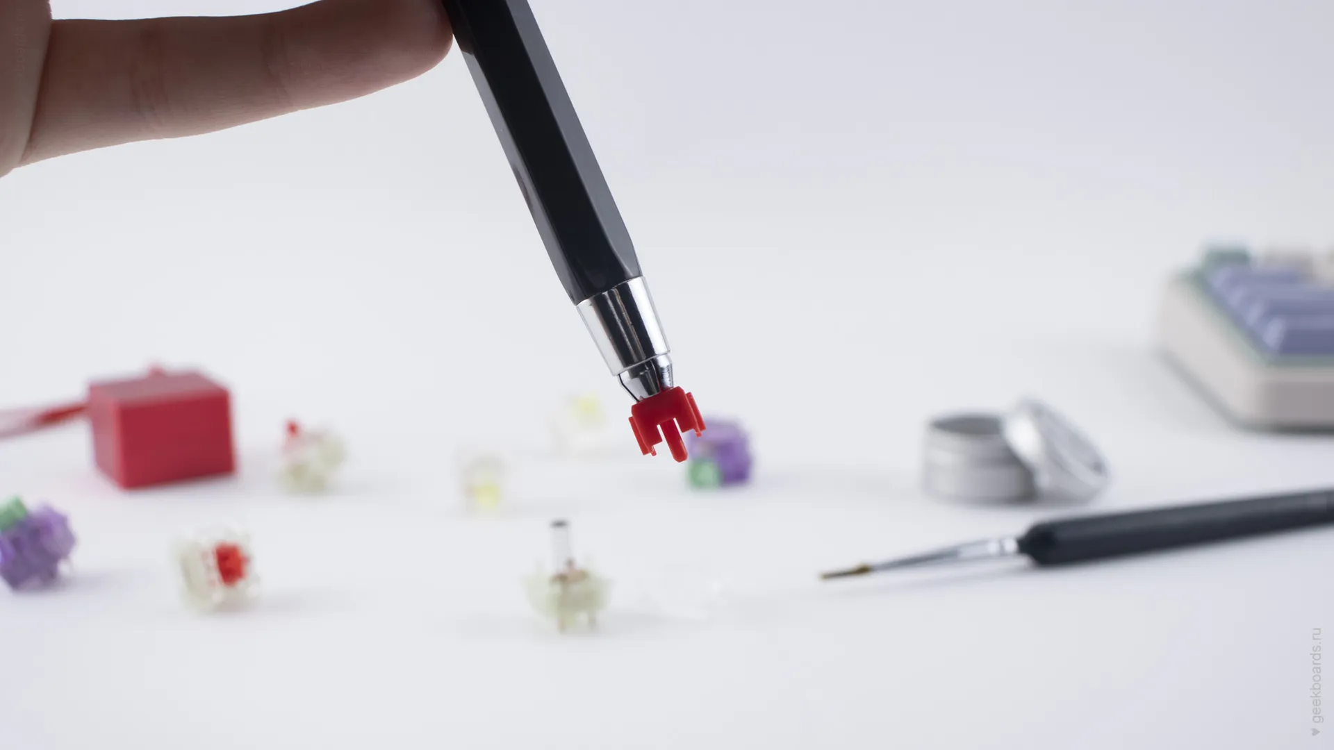 Иногда тонким металлическим ножкам стандартных держателей не под силу плотно обхватить некоторые запчасти, например, стем переключателя.
