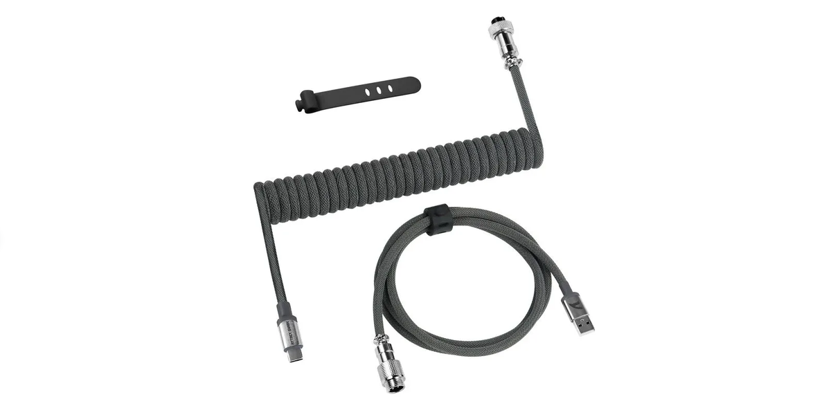 Стильный спиралевидный USB кабель от компании Attack Shark. Основная фишка — соединение двух частей кабеля с помощью пятипиновых авиаторов, которые не только придают крутизны внешнему виду, но и позволяют подсоединять клавиатуру к ПК без необходимости каждый раз тянуться куда-то далеко к USB порту. Пригодится тем, кто часто меняет клавиатуры или работает за несколькими ПК.