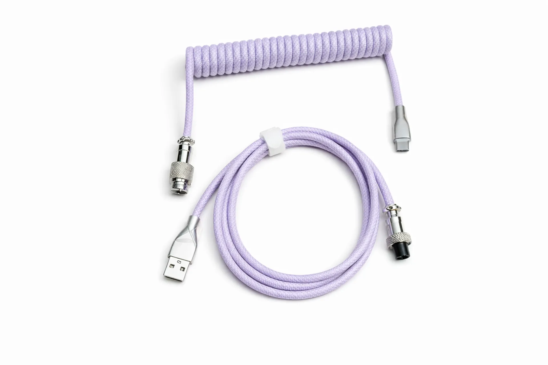 Стильный спиралевидный USB кабель от компании Attack Shark. Основная фишка — соединение двух частей кабеля с помощью пятипиновых авиаторов, которые не только придают крутизны внешнему виду, но и позволяют подсоединять клавиатуру к ПК без необходимости каждый раз тянуться куда-то далеко к USB порту. Пригодится тем, кто часто меняет клавиатуры или работает за несколькими ПК.