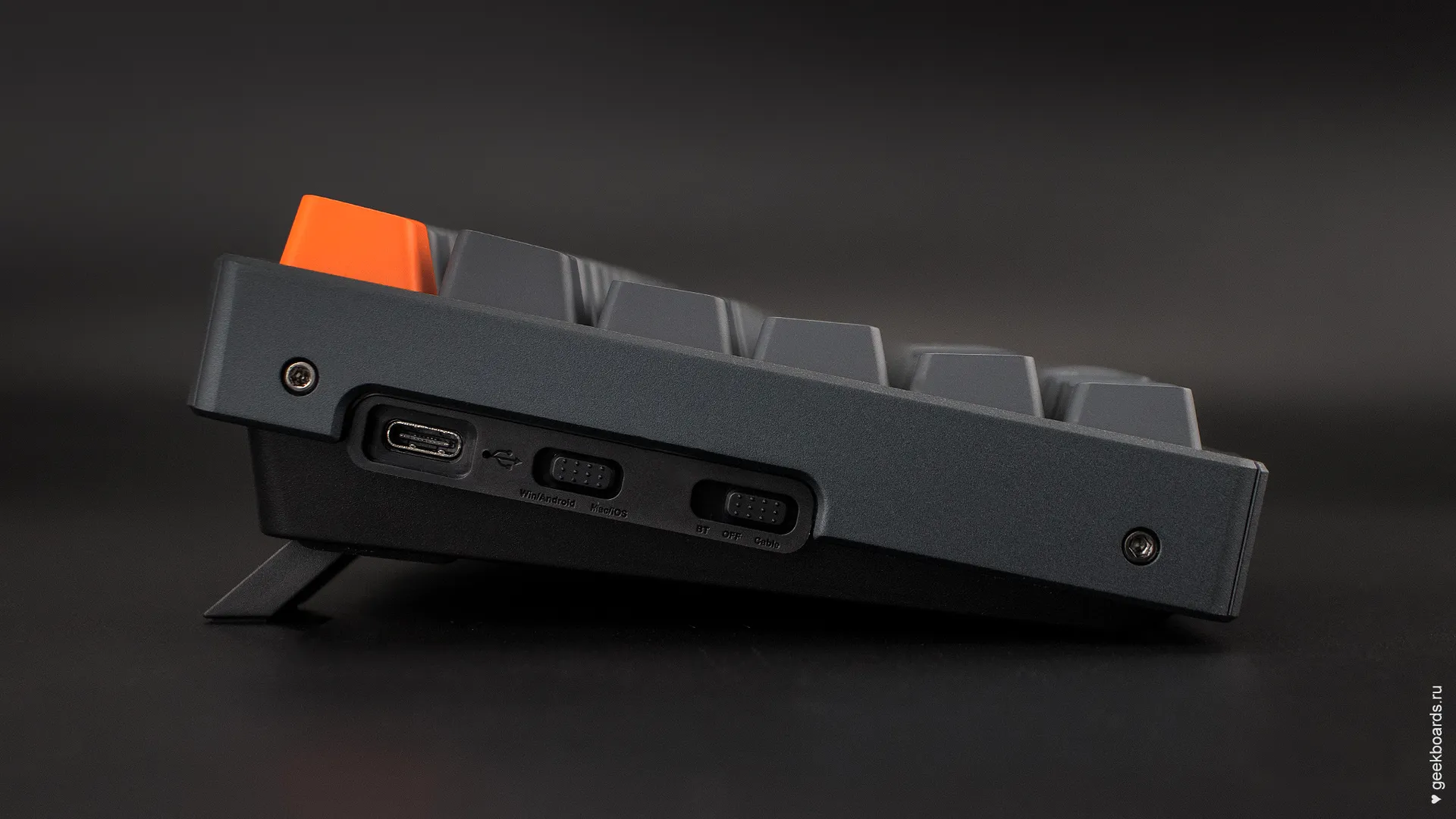 Клавиатуру можно подключить через Bluetooth 5.1 или кабель USB Type-C. Переключатель на боковой панели позволяет задать нужный режим. Bluetooth режим поддерживает подключение трёх устройств одновременно.
