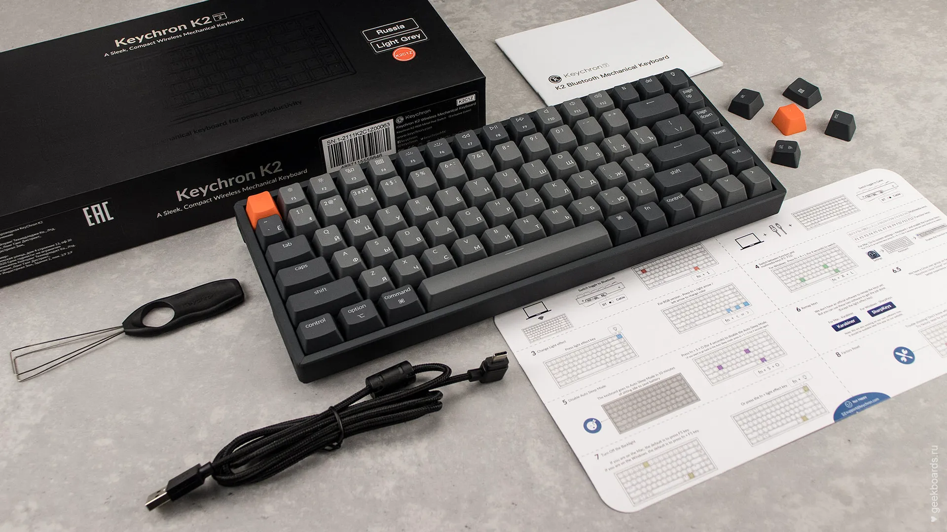 У Keychron K2 v2 есть все, о чем может мечтать любая клавиатура: 84 клавиши, беспроводной режим, RGB подсветка, сменные клавиши, корпус с алюминиевой рамкой. Не хватает только ваших заботливых нажатий.