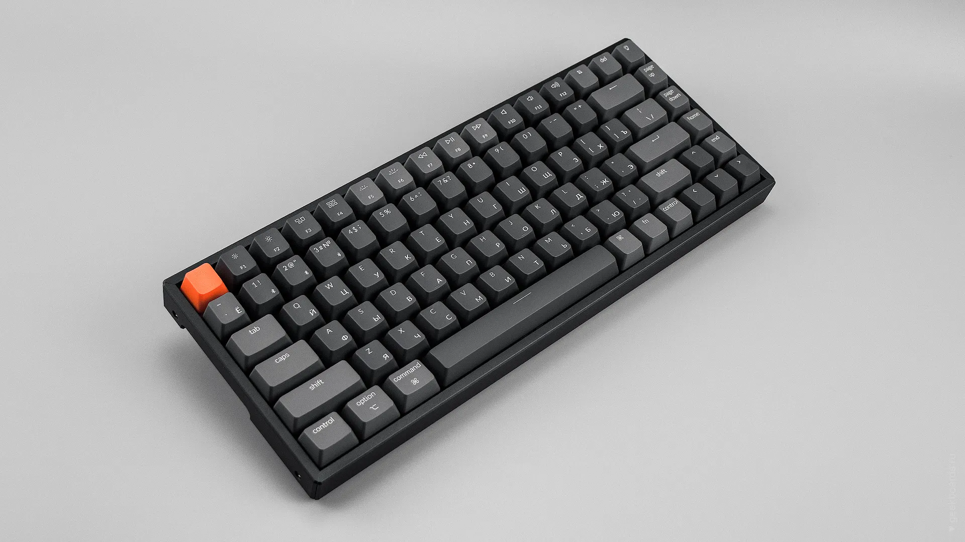 В комплекте есть сменные клавиши Win и Alt для использования на windows, а также дополнительная клавиша “подсветка” оранжевого цвета и серый Esc — можно сделать клавиатуру монотонной или добавить яркий акцент.