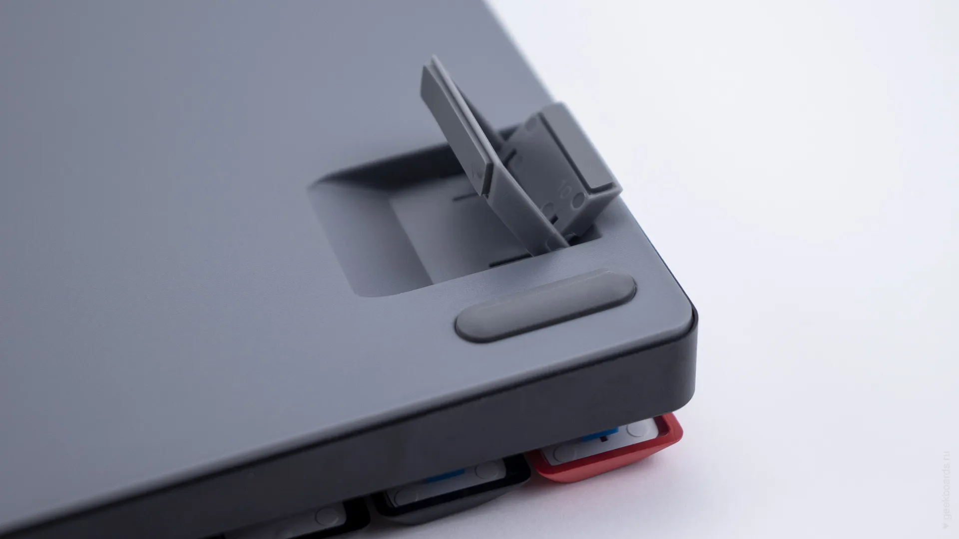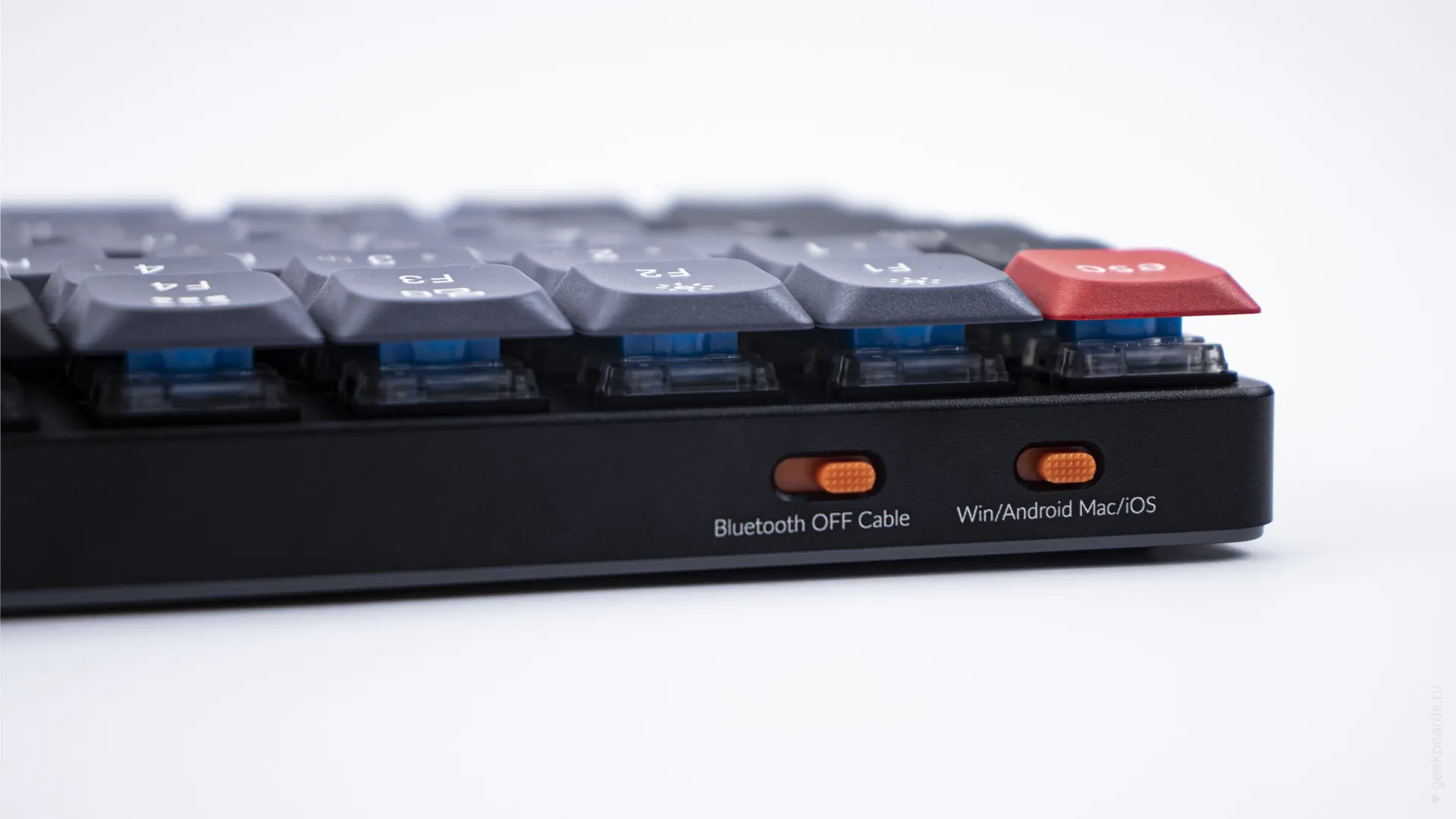 Клавиатуру можно подключить через Bluetooth 5.1 или кабель USB Type-C. Переключатель на задней панели позволяет задать нужный режим. Bluetooth режим поддерживает подключение трёх устройств одновременно.