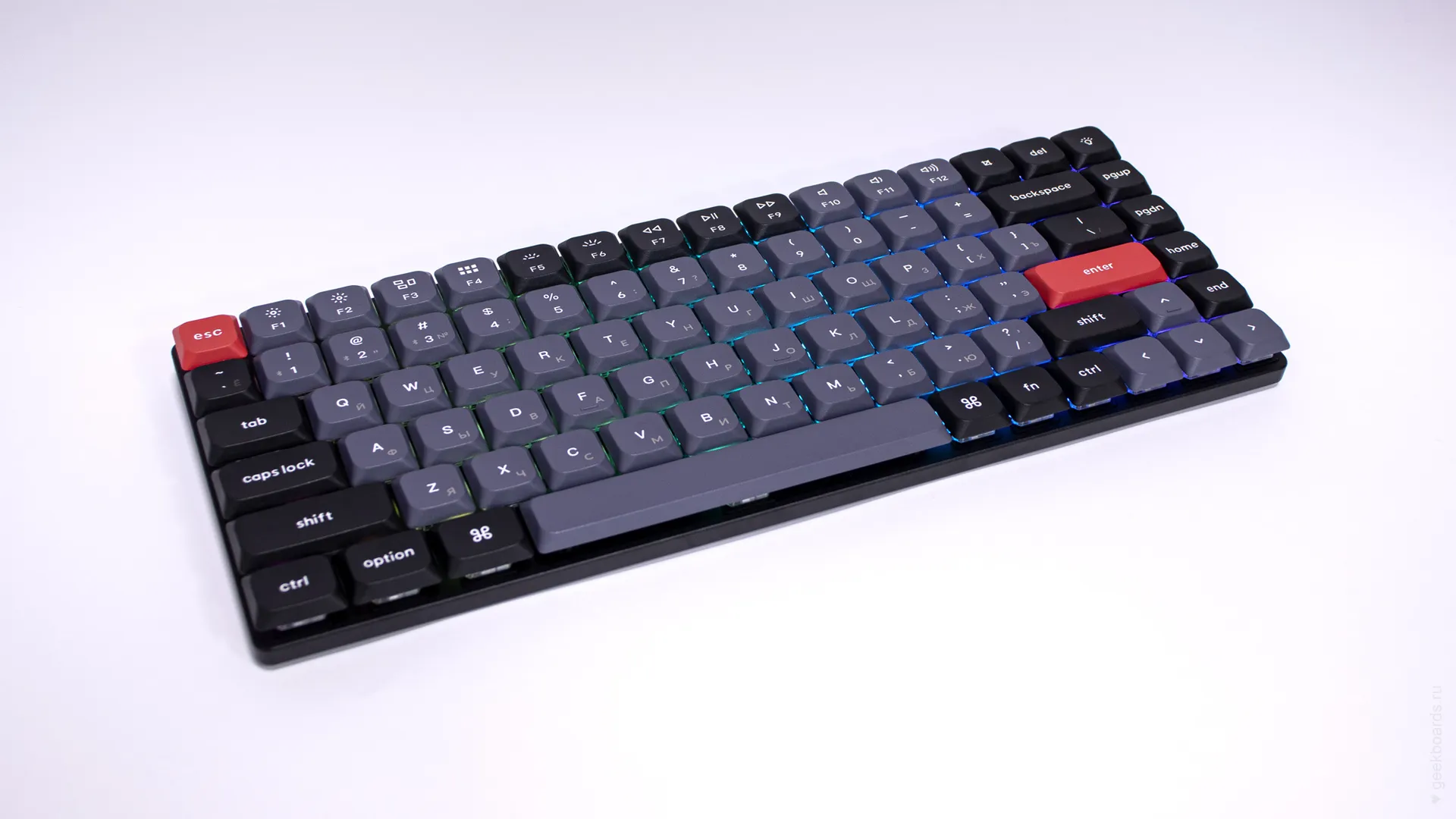 Сочетание 75% формата и низкопрофильных переключателей делает Keychron K3 RGB мобильной и компактной — клавиатура не займет много места на рабочем столе и ее легко брать с собой.