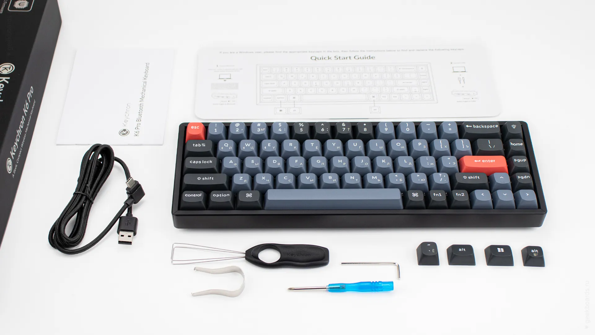 У Keychron K6 Pro есть все, о чем может мечтать любая клавиатура: 68 клавиш, беспроводной режим, RGB подсветка, сменные клавиши, hot-swap, корпус с алюминиевой рамкой и поддержка QMK/VIA, которая позволяет идеально настроить клавиатуру под свои потребности. Не хватает только ваших заботливых нажатий.