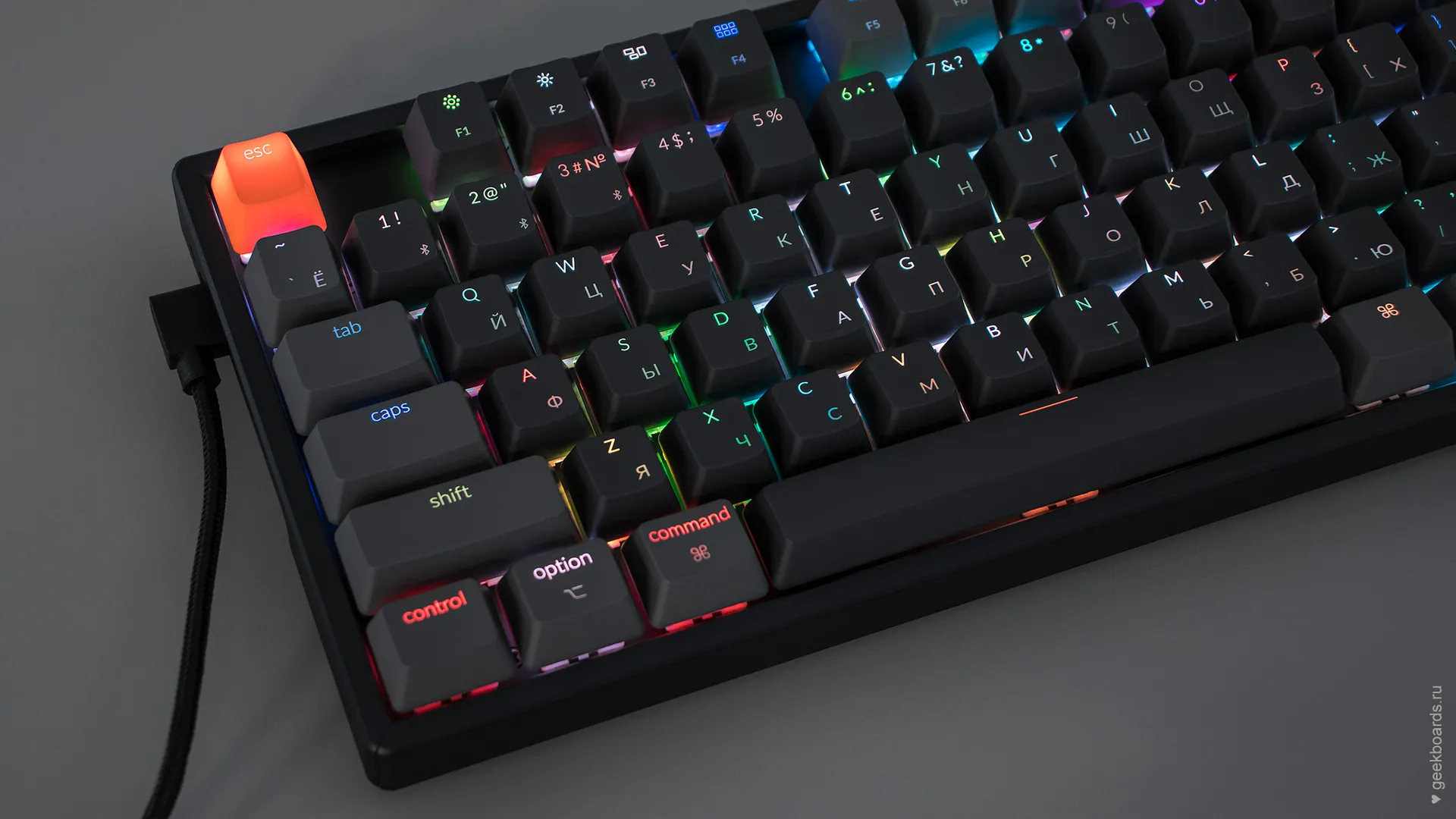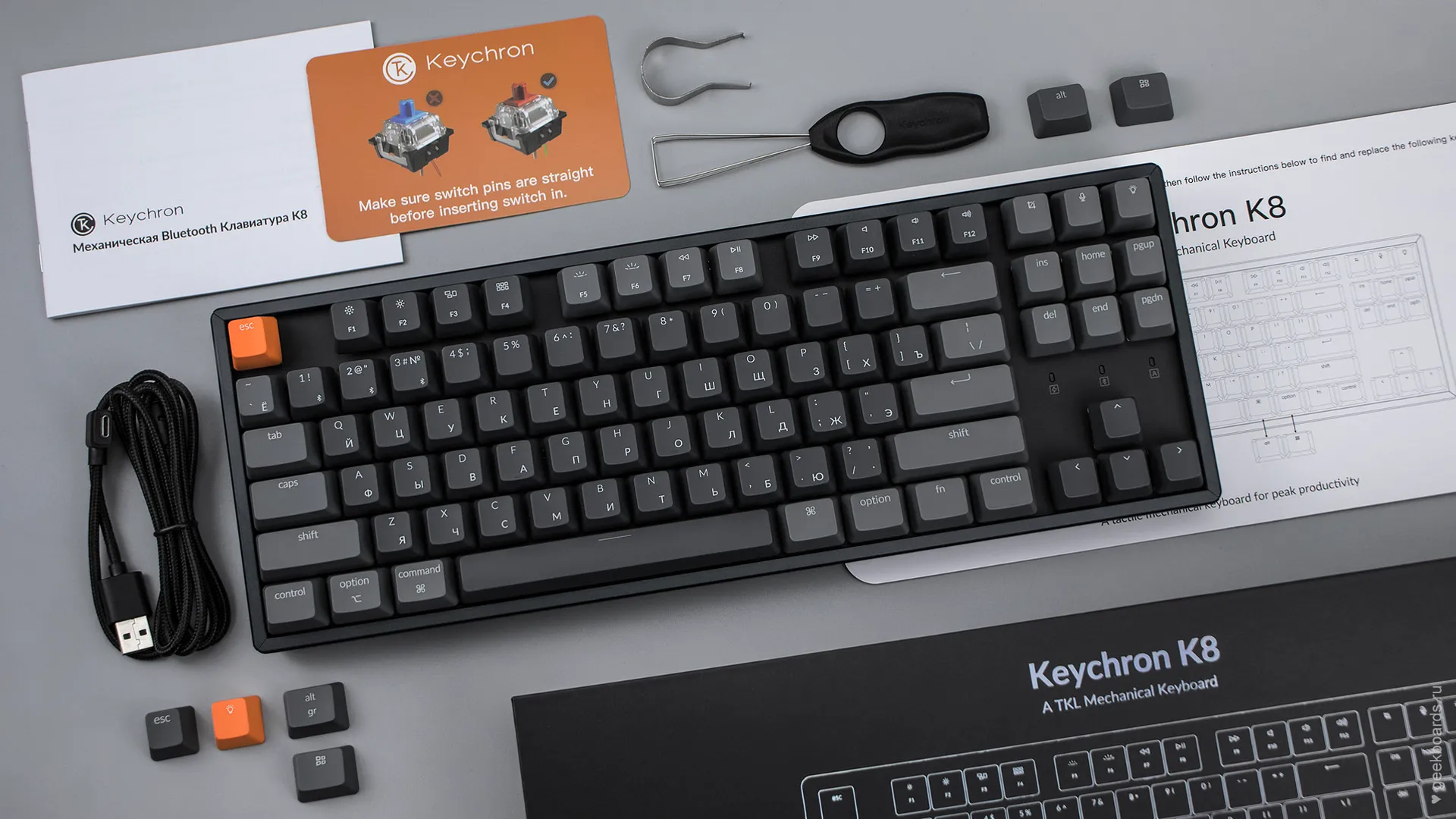 У Keychron K8 есть все, о чем может мечтать любая клавиатура: 87 клавиш, беспроводной режим, RGB подсветка, сменные клавиши, hot-swap, корпус с алюминиевой рамкой. Не хватает только ваших заботливых нажатий.