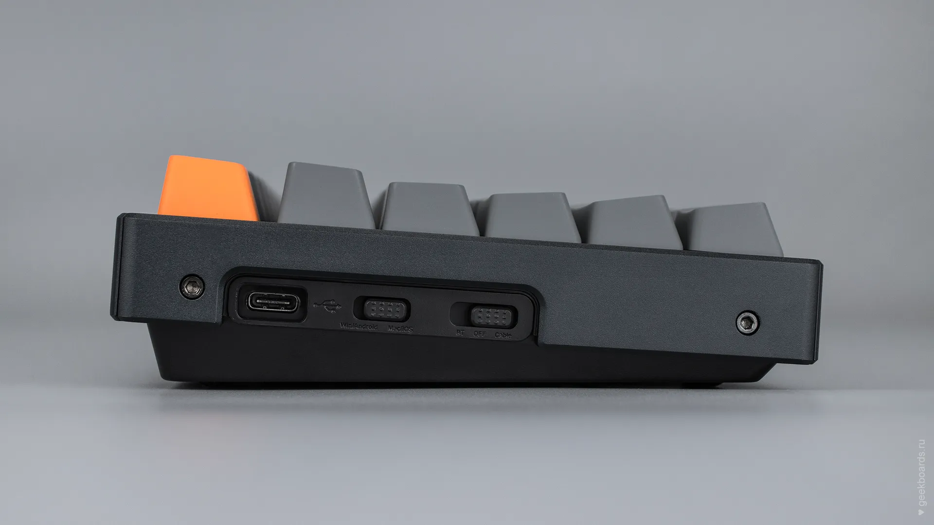 Клавиатуру можно подключить через Bluetooth 5.1 или кабель USB Type-C. Переключатель на боковой панели позволяет задать нужный режим. Bluetooth режим поддерживает подключение трёх устройств одновременно.