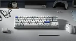 Корпус полностью выполнен из алюминия, что придаёт клавиатуре вес, устойчивость и плотный звук при печати. Белая версия выглядит аккуратно и премиально, хорошо вписывается в светлый сетап.