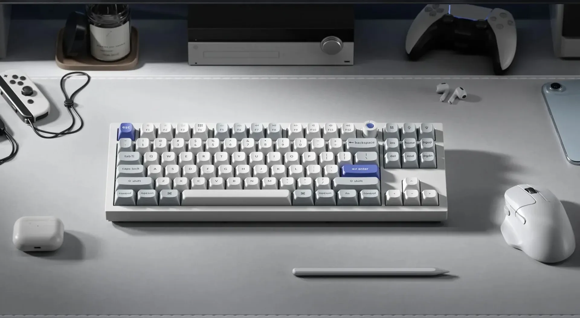Q3 HE выполнена в формате Tenkeyless — без цифрового блока. Это освобождает пространство для мыши и делает посадку рук более естественной, при этом все основные клавиши остаются на месте.