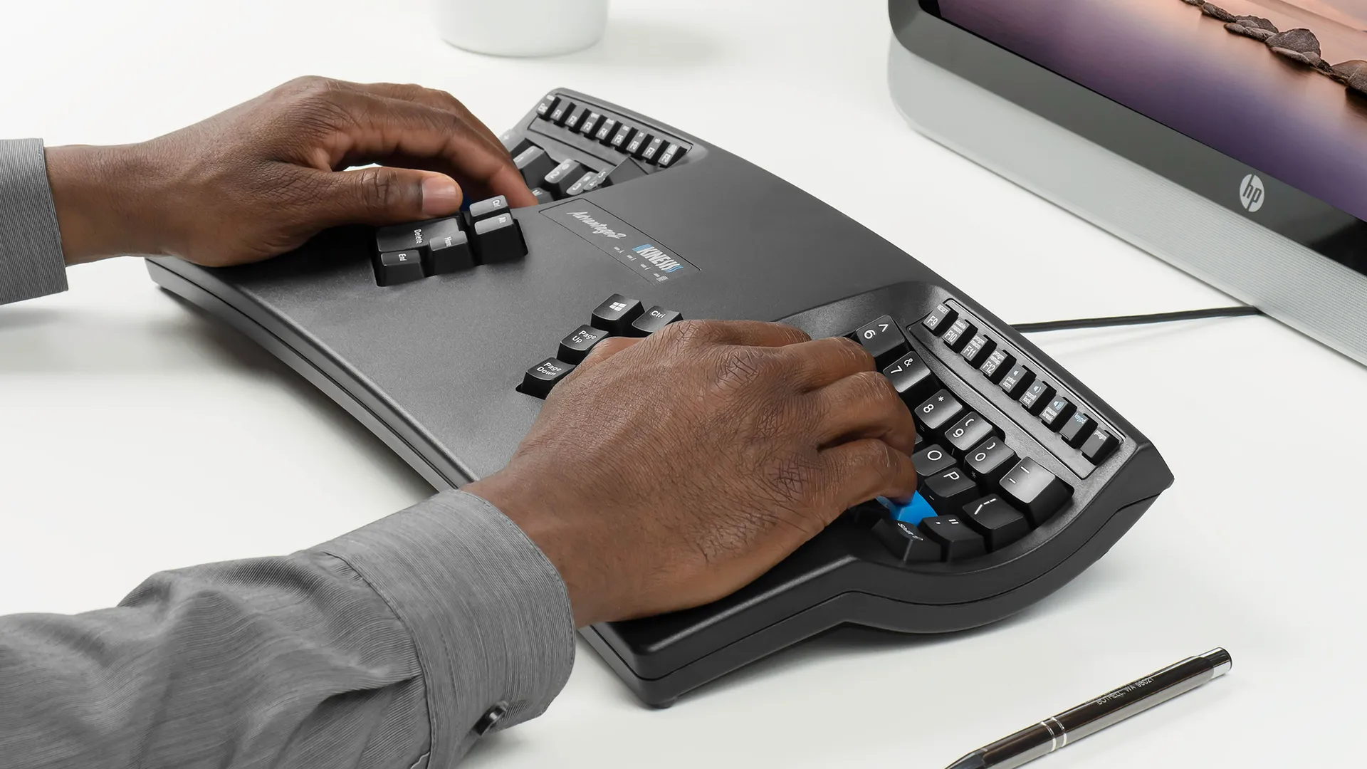 Благодаря такой конструкции руки располагаются на ширине плеч, а запястья смотрят точно прямо. Это минимизирует напряжение рук и предотвращает неестественное изгибание кистей, которое может стать причиной туннельного синдрома (RSI - Repetitive Strain Injury), сопровождающегося болезненными ощущениями в кистях и пальцах рук, вплоть до потери трудоспособности. Клавиатура Advantage2 существенно снижает эти риски, что важно для профессионалов.