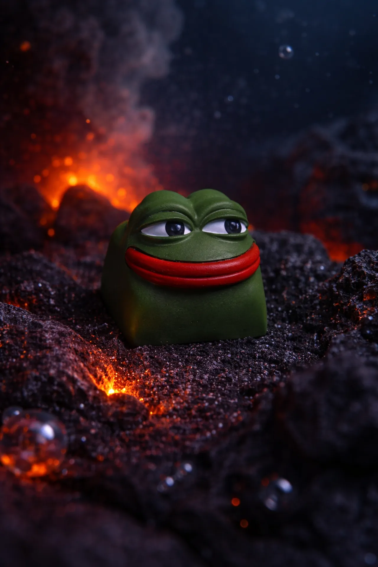 Ироничный взгляд, узнаваемая ухмылка и выразительная детализация — этот Артизан-кейкап с Pepe the Frog сразу притягивает внимание. Скульптура выполнена вручную с акцентом на мимику: слегка прищуренные глаза и фирменная улыбка создают тот самый «настроенческий» вайб.