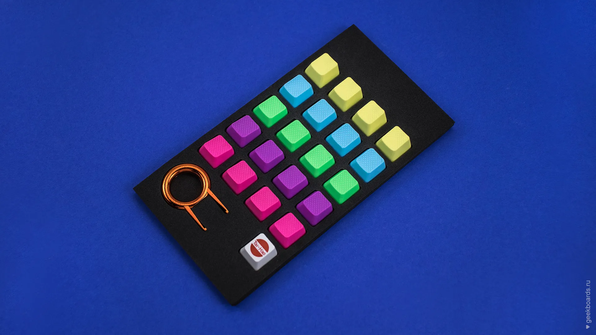 20 клавиш без символов для любого геймера и не только. Капы выполнены из Double Shot ABS пластика, верхняя часть прорезинена. Кейкапы пропускают подсветку символа.