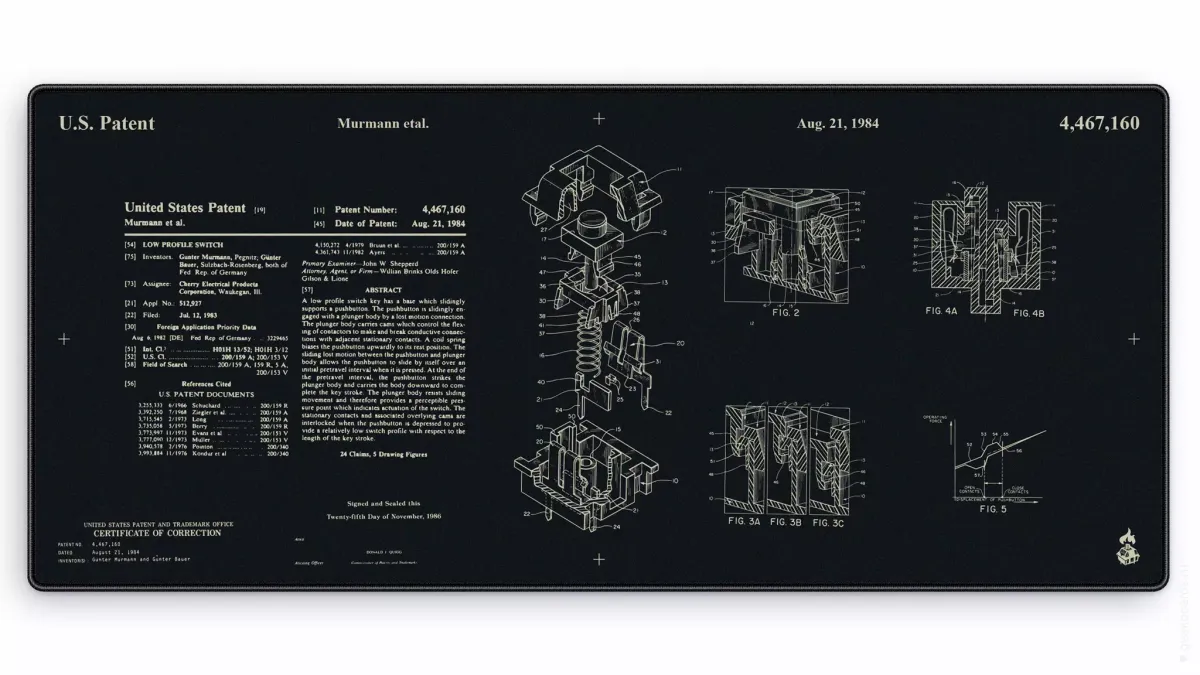 Дизайн коврика Switch мы посвятили самой важной детали клавиатуры — переключателю, а за основу взяли настоящий производственный чертёж. Для любителей идеальных линий и аутентичных мотивов.