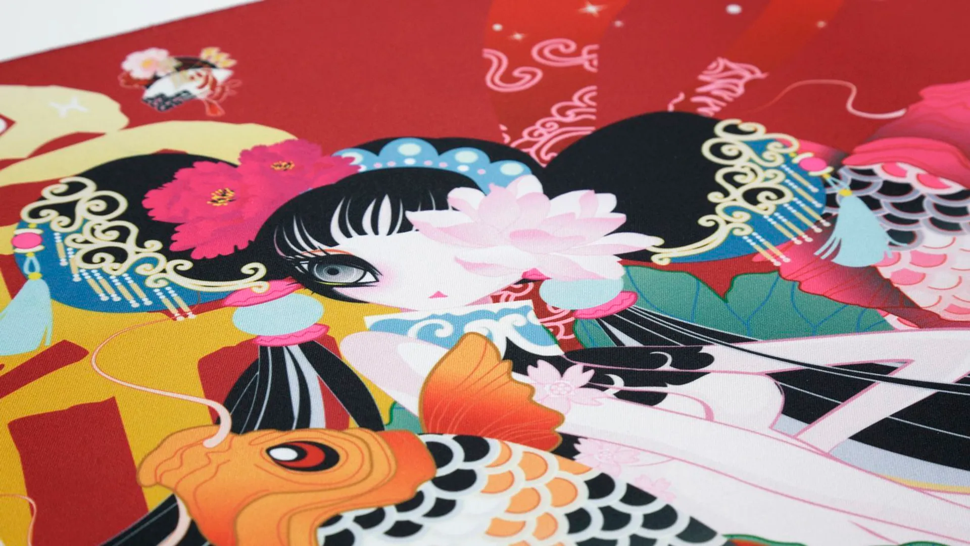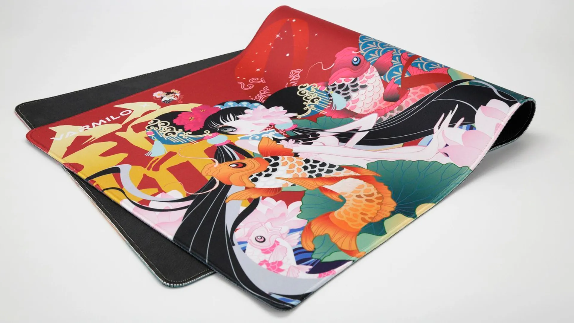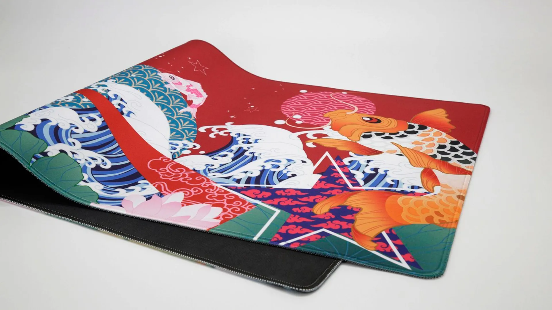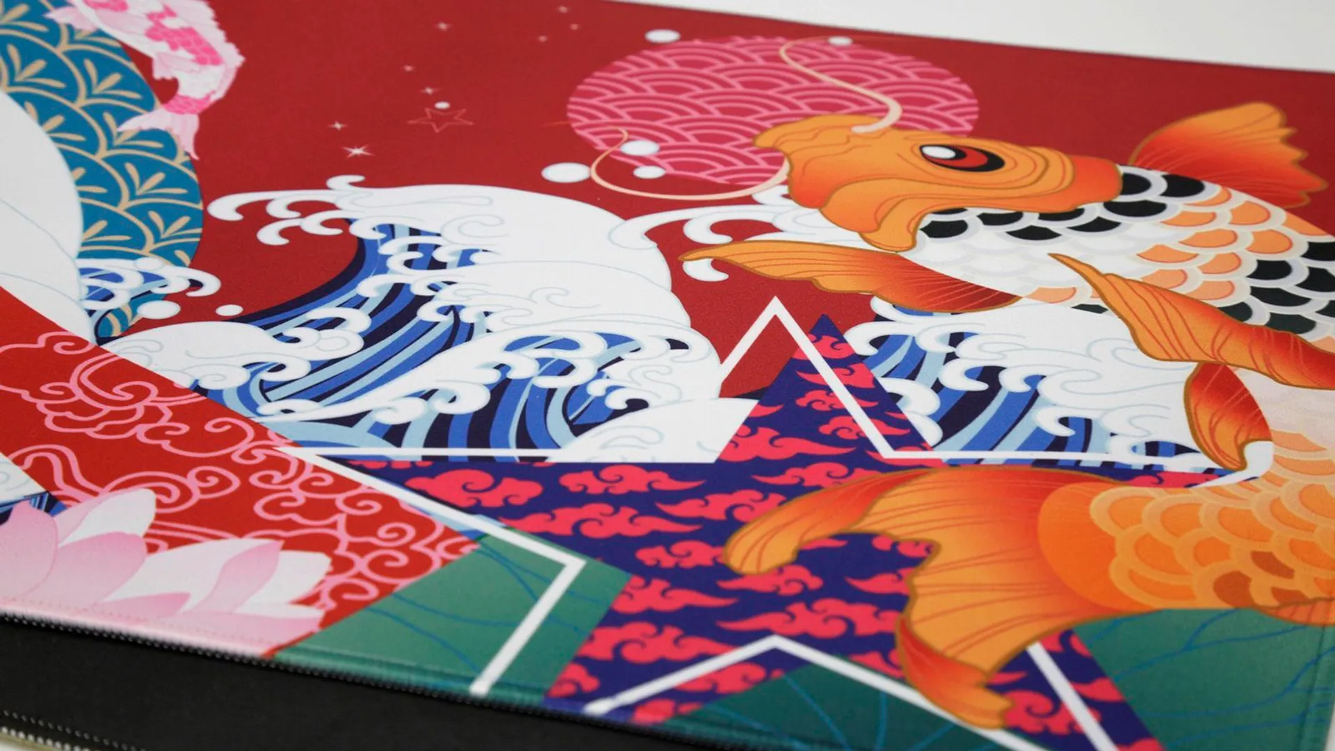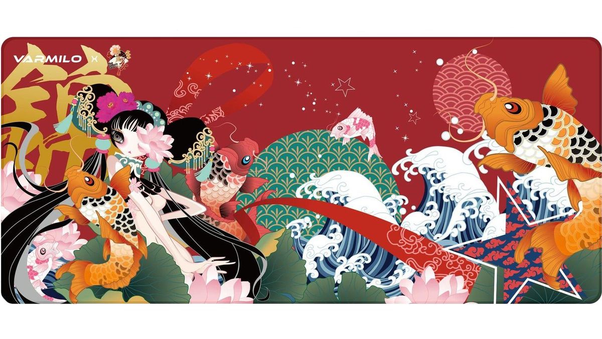 Коврик на рабочий стол Varmilo Koi Peony с прошитыми краями. Размер – 90х40x0.3 см.