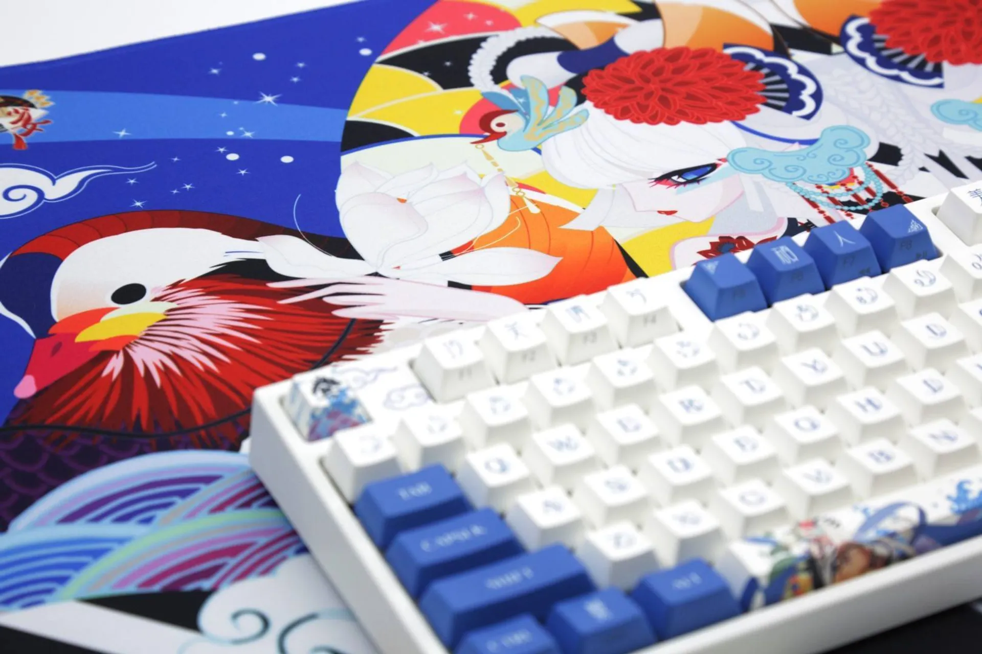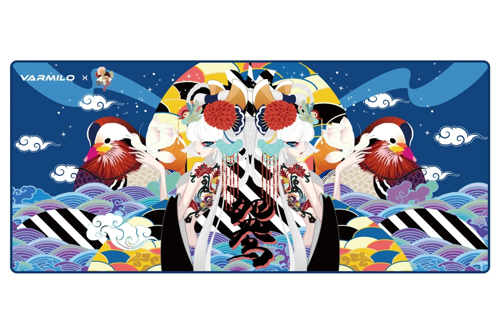 Коврик на рабочий стол Varmilo Lovebirds — I с прошитыми краями. Размер – 90х40x0.3 см.