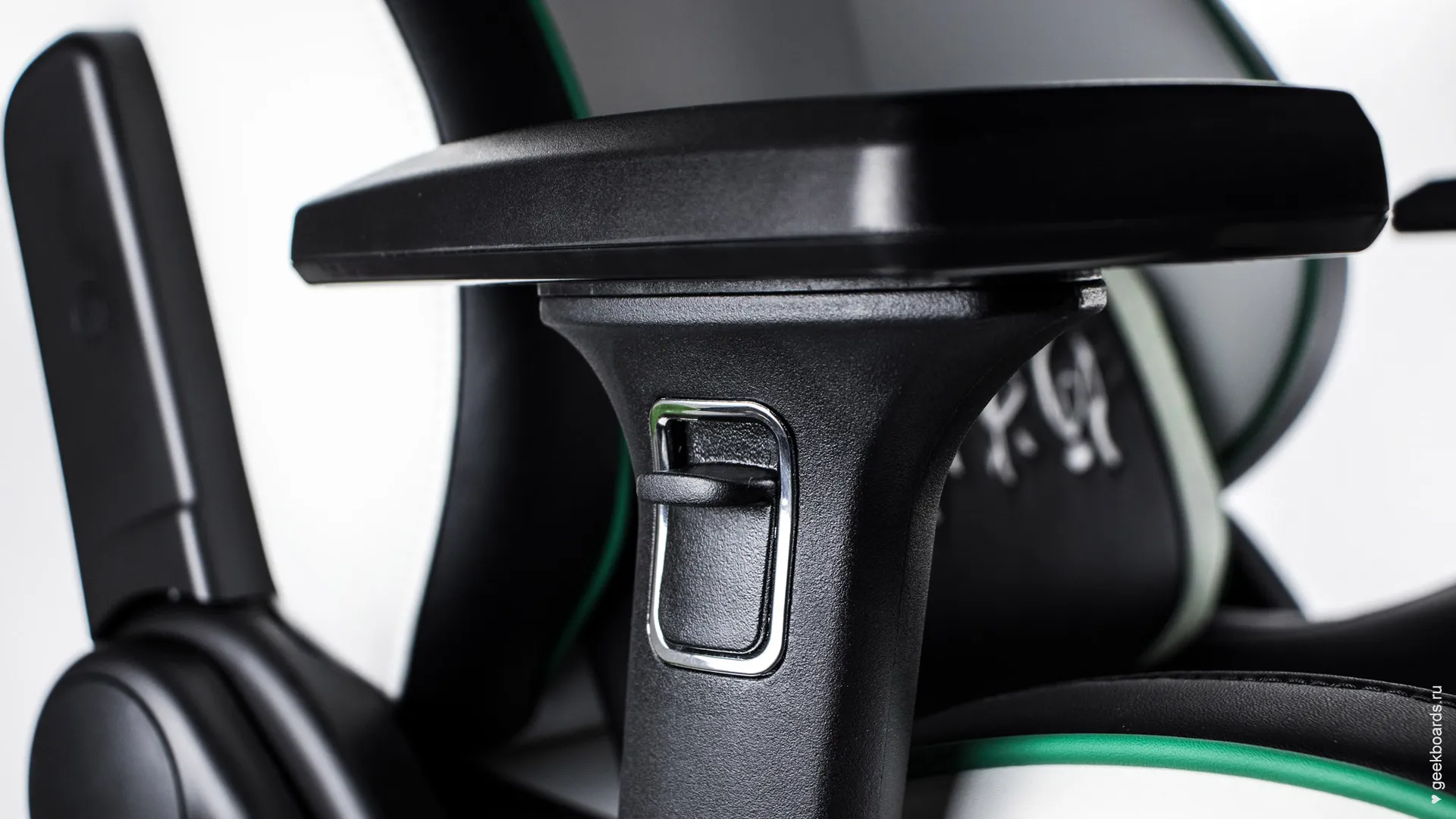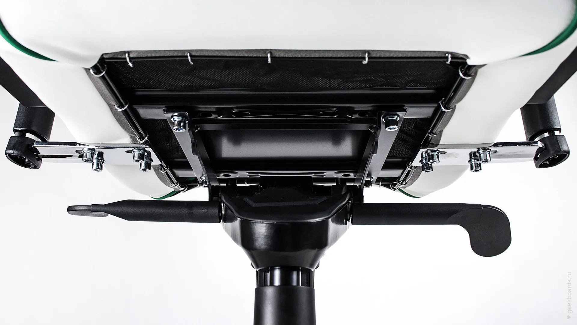 Высота кресла регулируется с помощью рычага под правой рукой. Для активации качания нужно повернуть рычаг в крайнее правое положение.