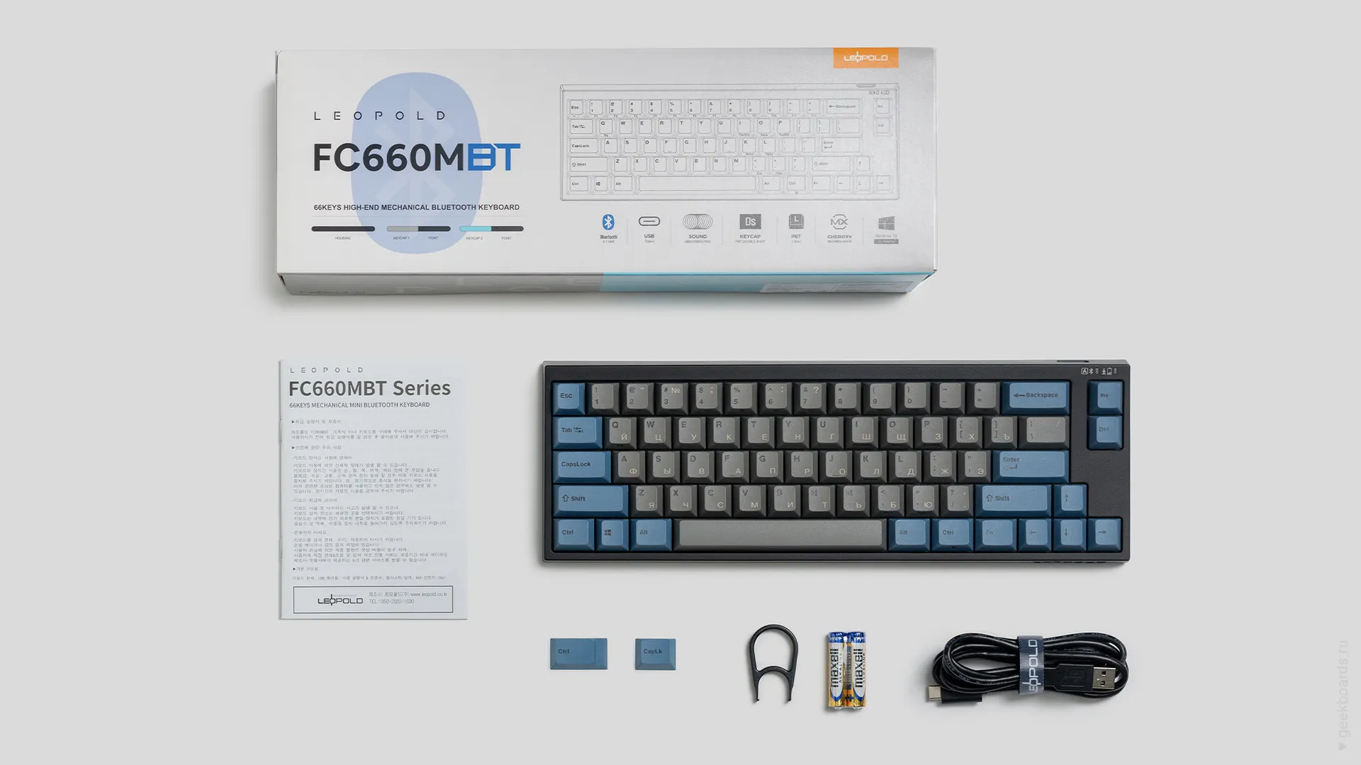 В комплекте есть 2 сменные клавиши для переназначенных клавиш Ctrl и Caps Lock.