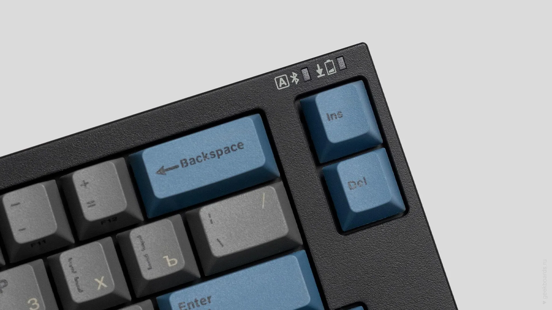 Изготовлены из PBT пластика с применением double-shot технологии — неубиваемые, приятные на ощупь и при нажатии издают мягкий глухой звук.