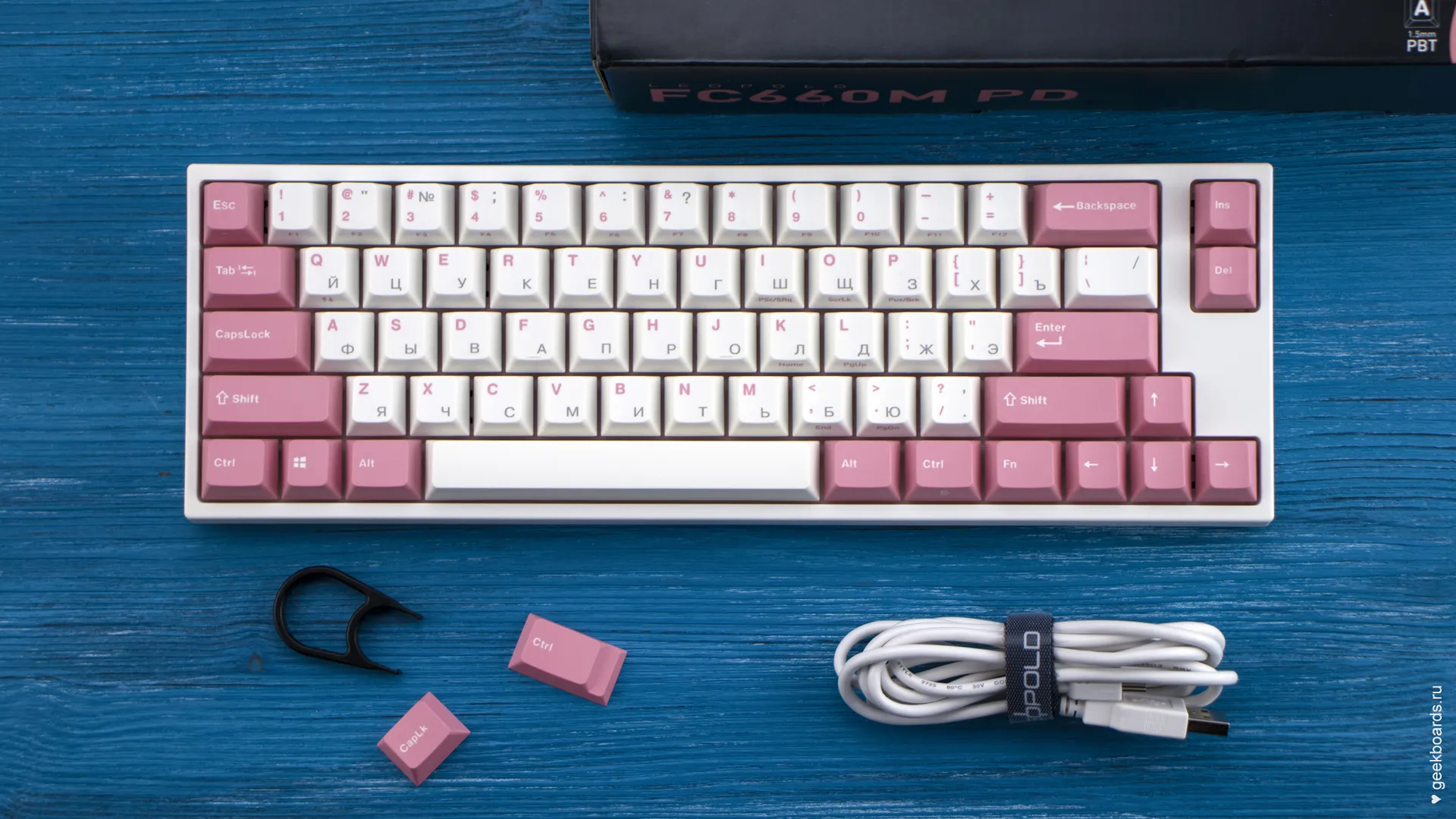 Механическая клавиатура Leopold FC660M PD Light Pink на переключателях Cherry MX Red. Использовали один день. Вернули потому, что не подошли переключатели. Внешних деффектов нет, как новая. На клавиатуре присуствует русская гравировка.