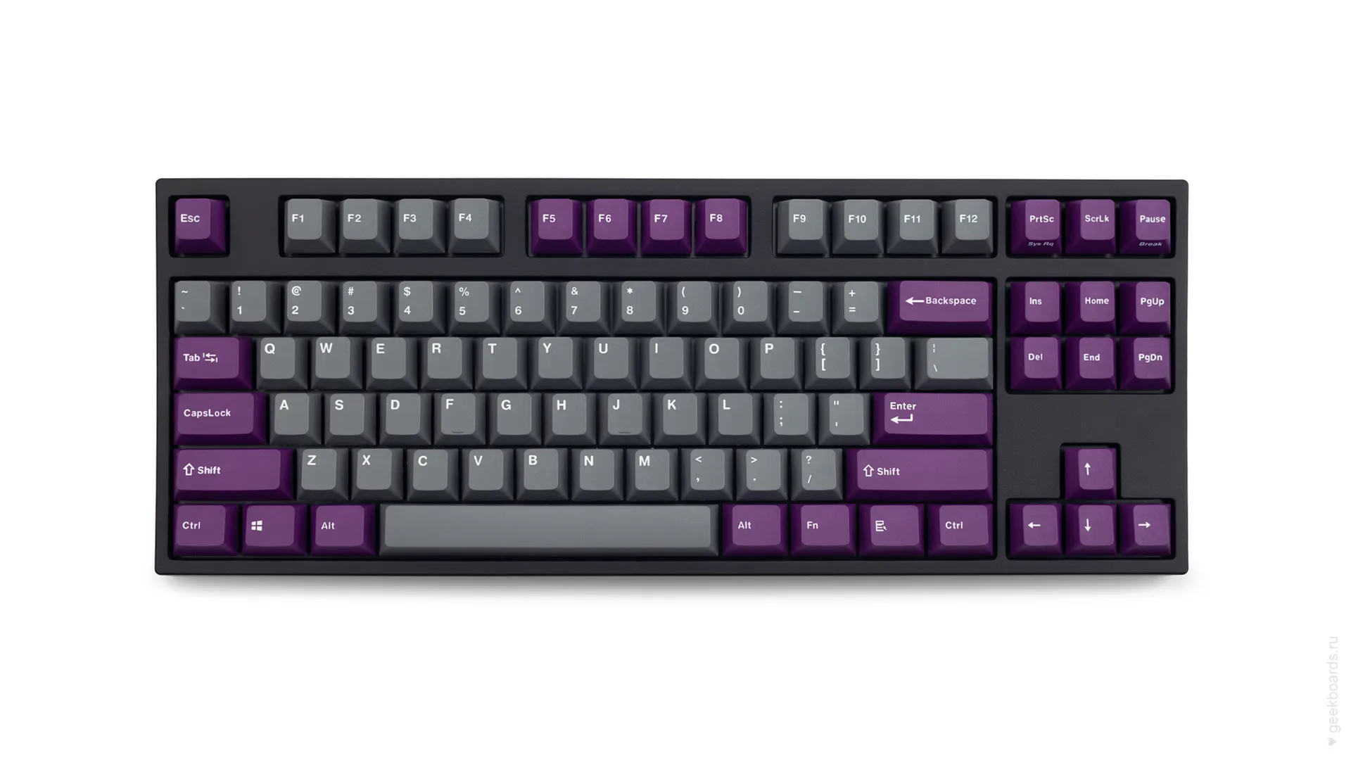 Leopold FC750R BT Gray Purple — беспроводная клавиатура 80% формата с низкопрофильными double-shot PBT кейкапами и заводской шумоизоляцией.