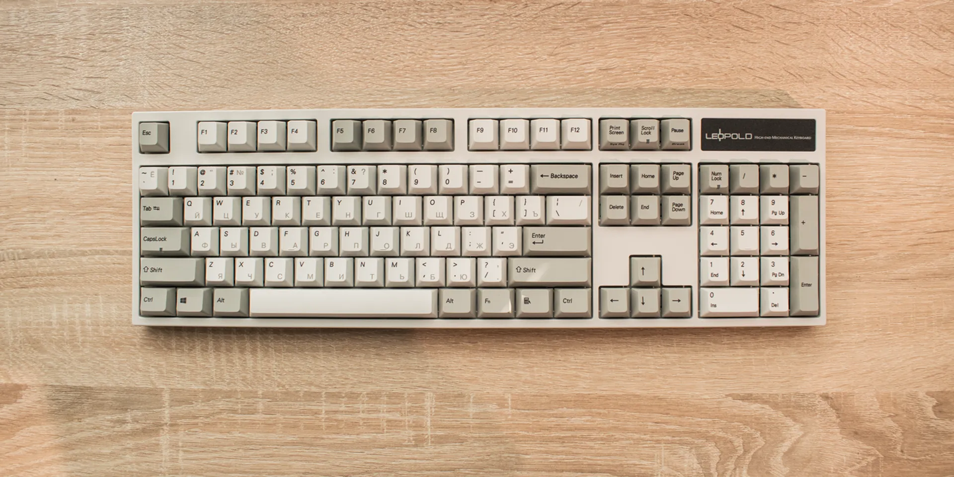 Механическая клавиатура Leopold FC900R Dye-sub white с переключателями Cherry MX Red. В идеальном состоянии. Когда делали гравировку, не обратили внимания, что капы G и H перепутаны. Следовательно гравировка нанесена не верно, буква П и Р не на своих местах. :)