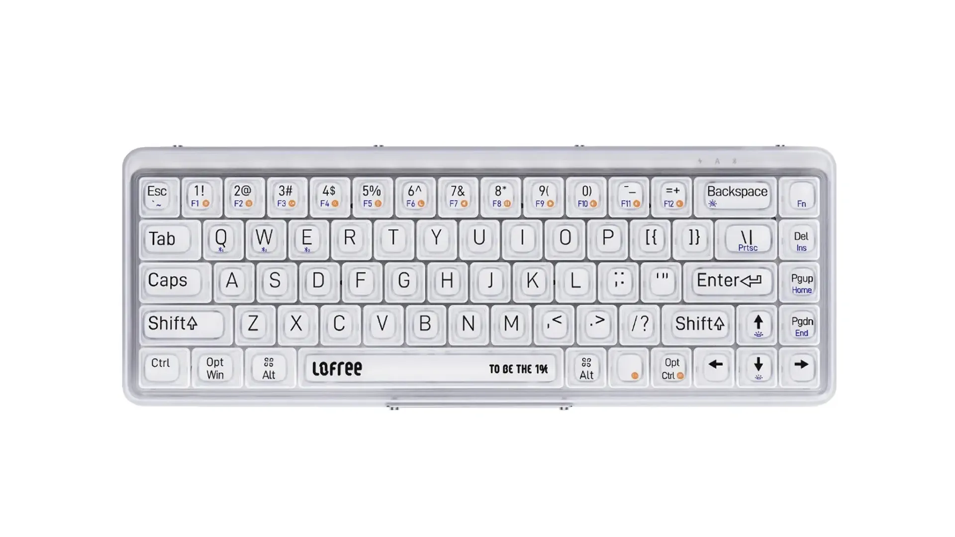 1% Misty — классическая механика 65% формата из серии полупрозрачных клавиатур. Главная её фишка: матовый финиш пластика, который красиво рассеивает белую подсветку. Необычная, минималистичная и с приятным мягким тайпингом.