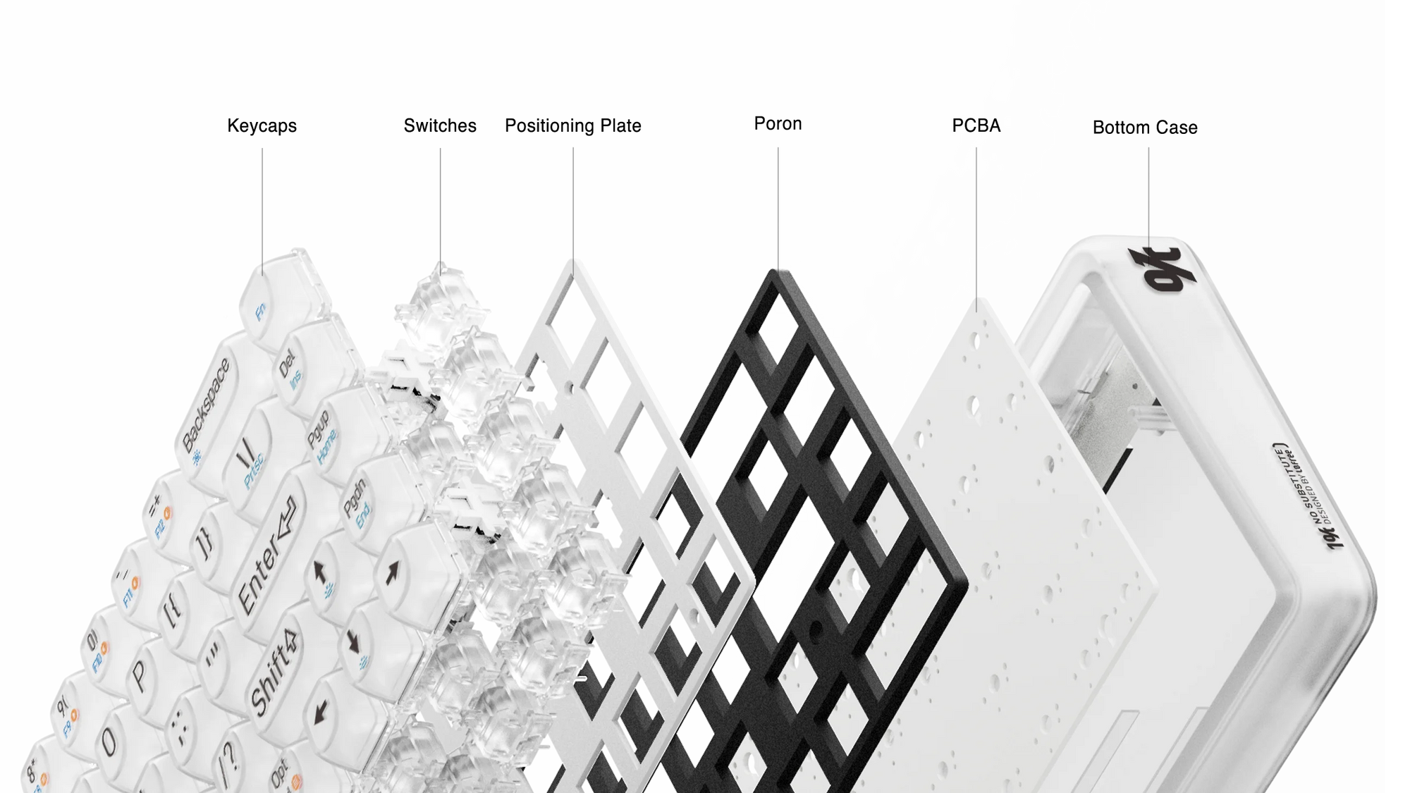 Внутри две подложки: в корпусе + между платой и плейтом. Они поглощают звуки и вибрации при нажатии и делают процесс печати тише.