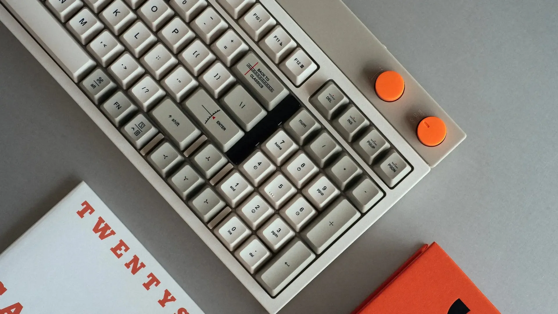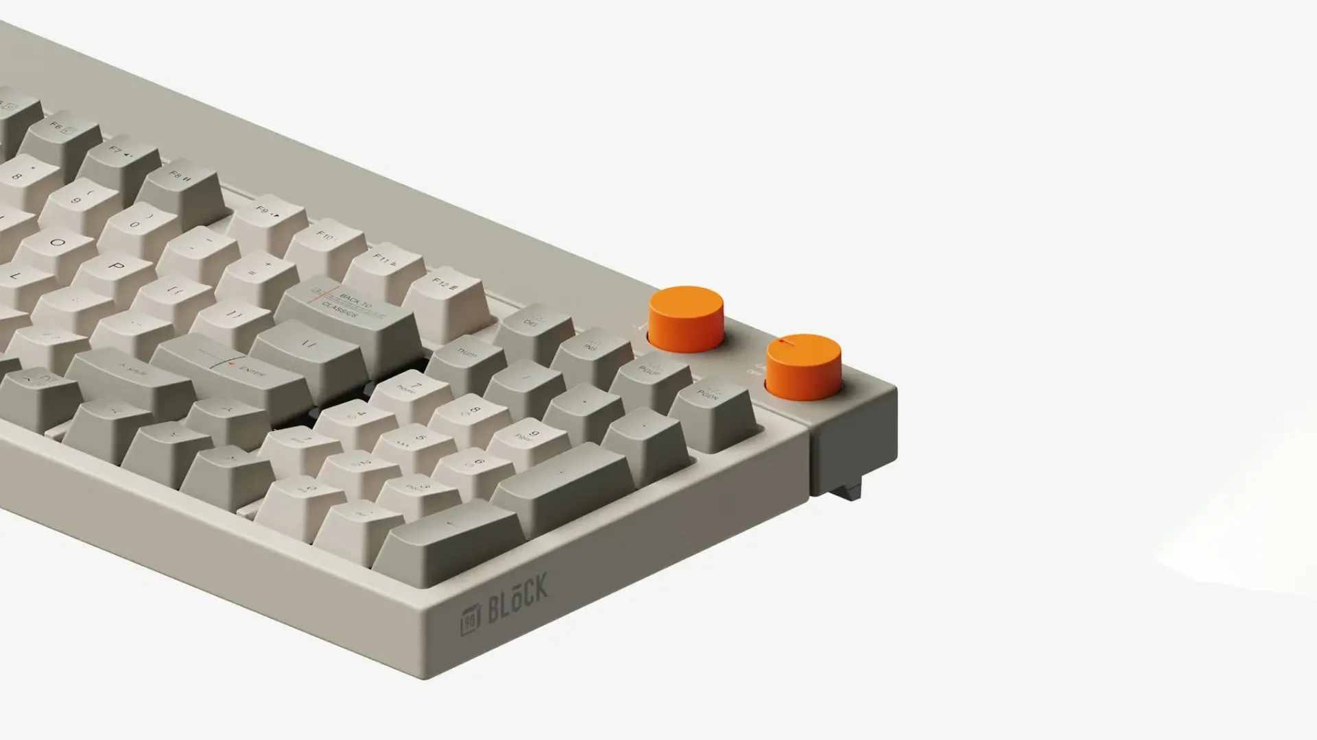 Block — полноразмерная клавиатура с аутентичным ретро-дизайном и современным наполнением. Внутри есть всё, что нужно для комфортного тайпинга и продуктивной работы: гаскет маунт, комплект для шумоизоляции, неубиваемые кейкапы, три режима подключения и два поворотных энкодера.