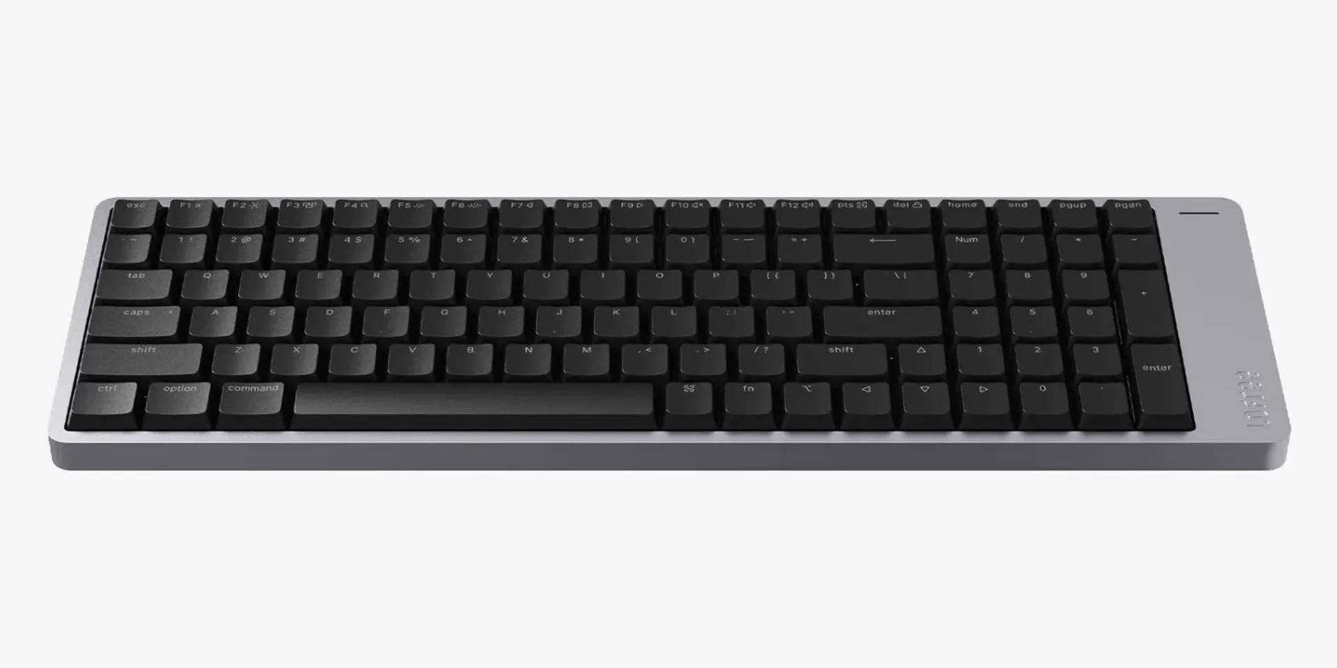 Flow100 2 — новая компактная клавиатура формата 96% в алюминиевом корпусе. Все грани ровные и гладкие, а поверхность приятно ощущается под пальцами. Добавили сенсорное управление звуком и яркостью, а также поддержку QMK/VIA.