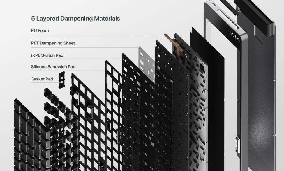 Тип крепления платы или плейта в клавиатуре с помощью демпферных прокладок, который позволяет изолировать плату и плейт от прямого контакта с корпусом — это делает звук печати более аккуратным и чуть тише.