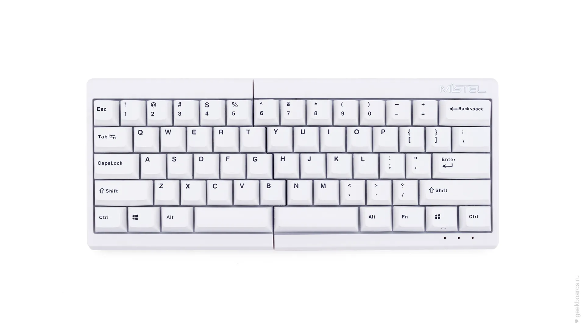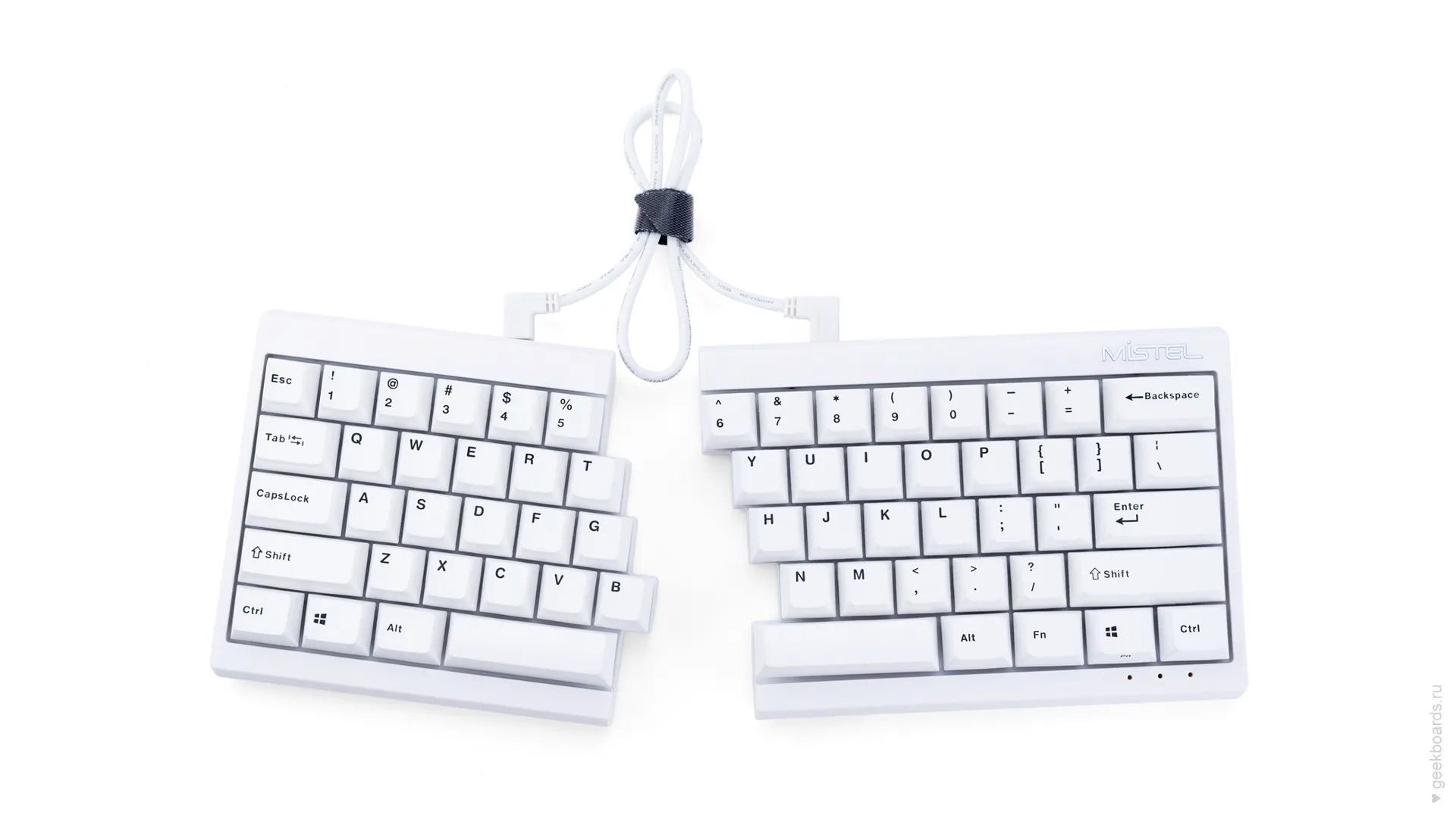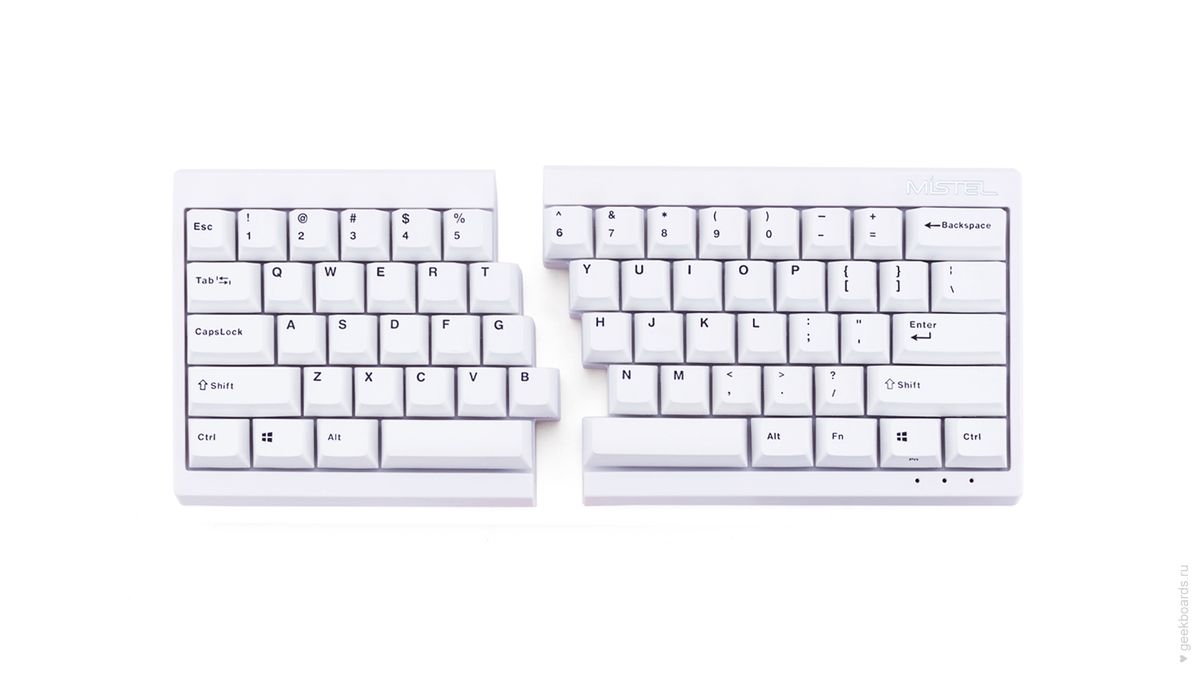 Mistel — тайваньская компания, которая славится своими сплитами. Сплит — это эргономический форм-фактор, суть которого в разделении клавиатуры на две отдельные части. Такой подход позволяет расположить запястья анатомически ровно, благодаря чему руки меньше устают при работе.