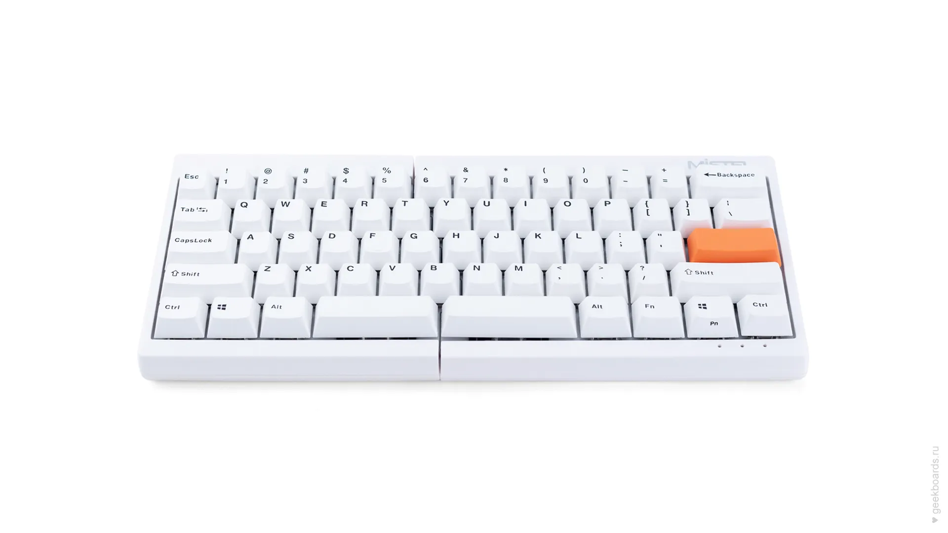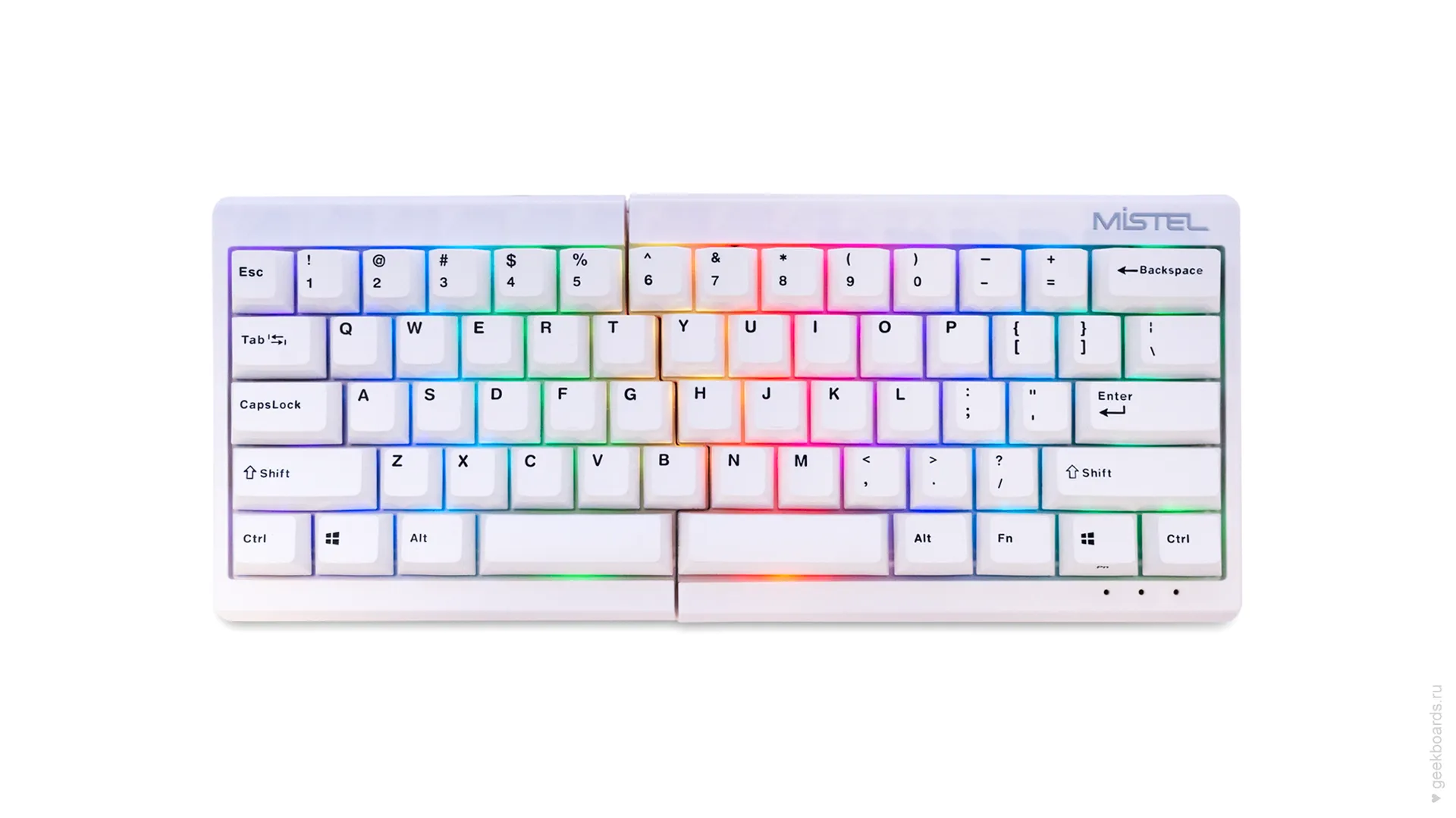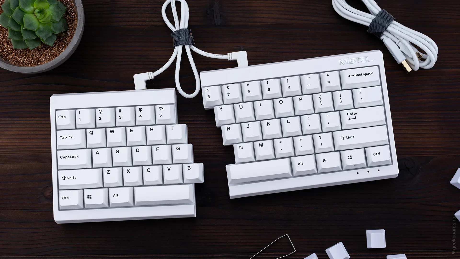 Mistel — тайваньская компания, которая славится своими сплитами. Сплит — это эргономический форм-фактор, суть которого в разделении клавиатуры на две отдельные части. Такой подход позволяет расположить запястья анатомически ровно, благодаря чему руки меньше устают при работе.