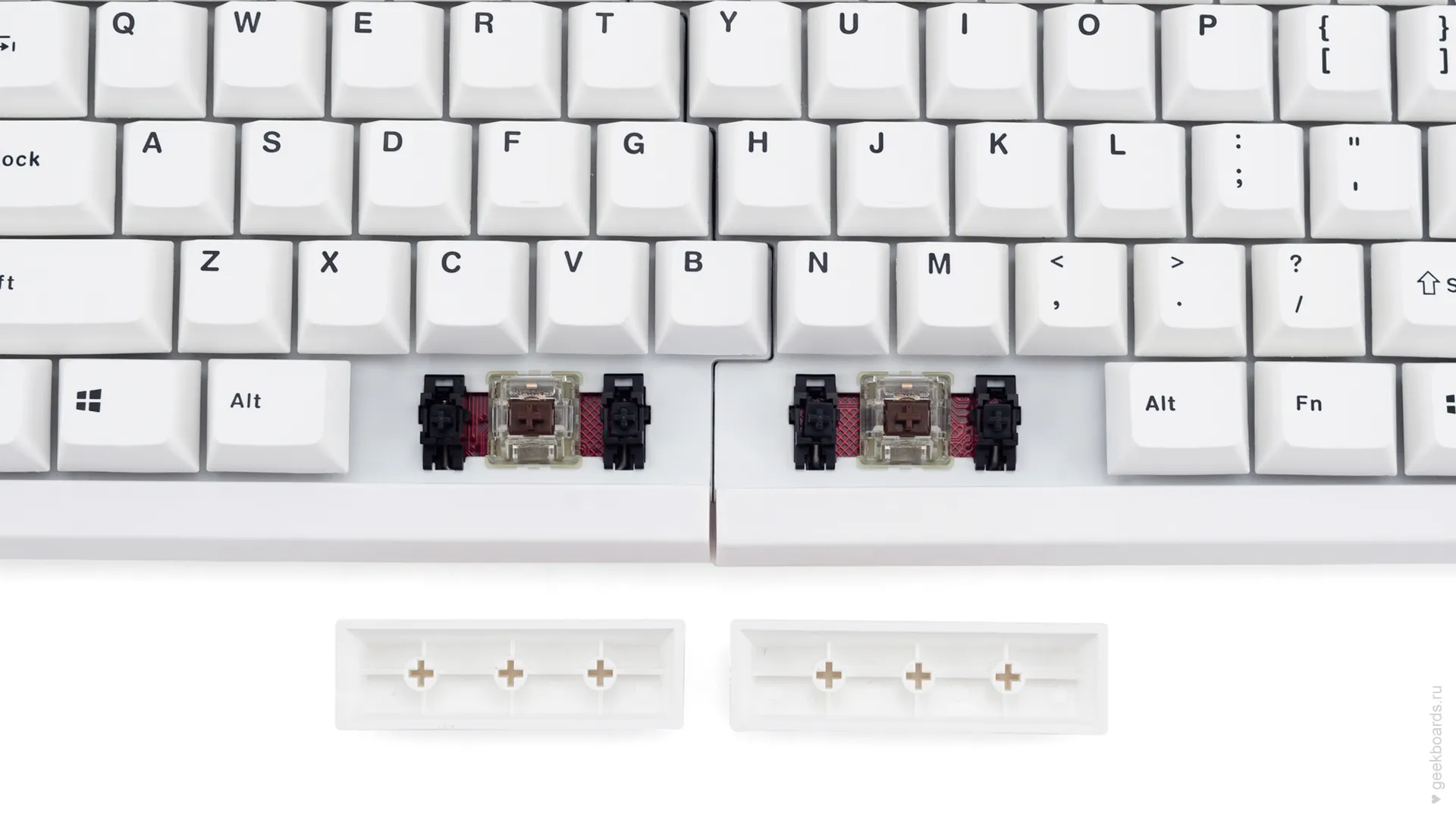 Вся клавиатура программируется, включая разделённую клавишу пробела, каждую из частей которого можно настроить отдельно. Поддерживаются 3 слоя макросов.